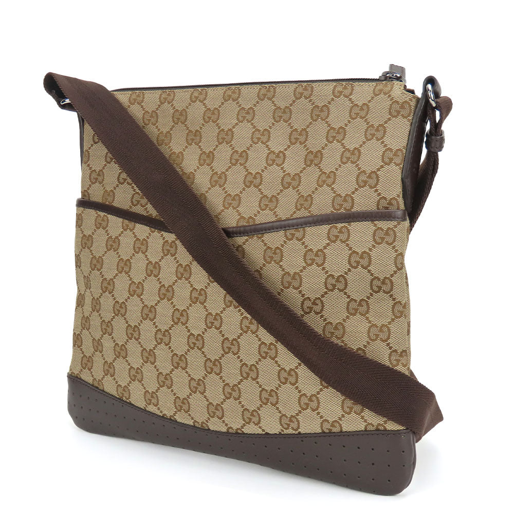 GUCCI Shoulder Bag 145857 GG canvas, perforated leather Brown mens(Unisex) Used Authentic