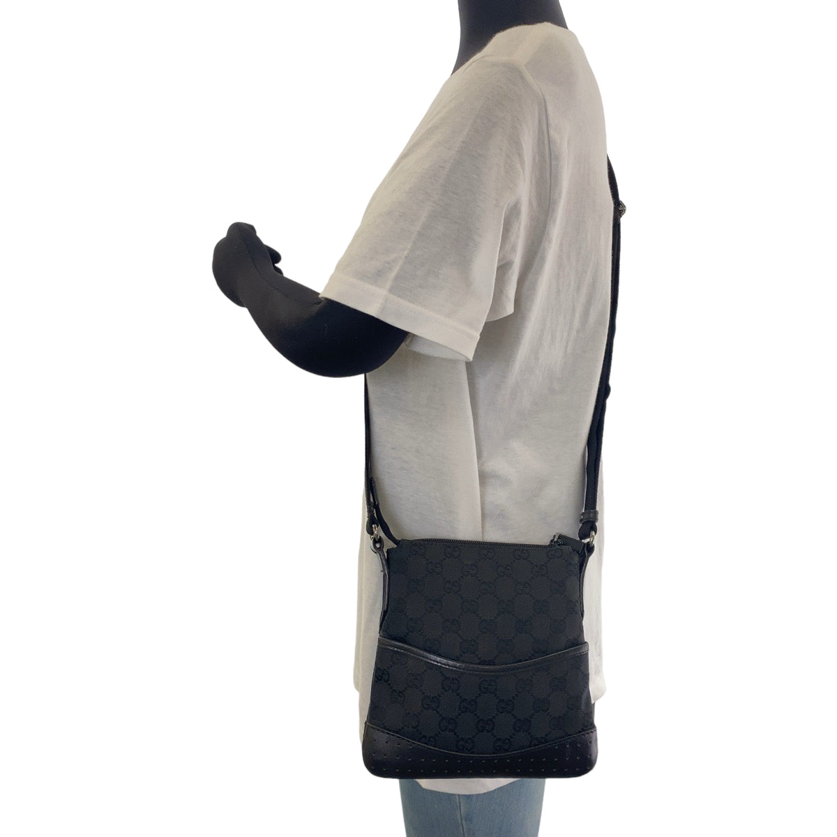 GUCCI Shoulder Bag 147671 GG canvas Black SilverMetal Crossbody Shoulder Bag Messenger Bag Women Used Authentic