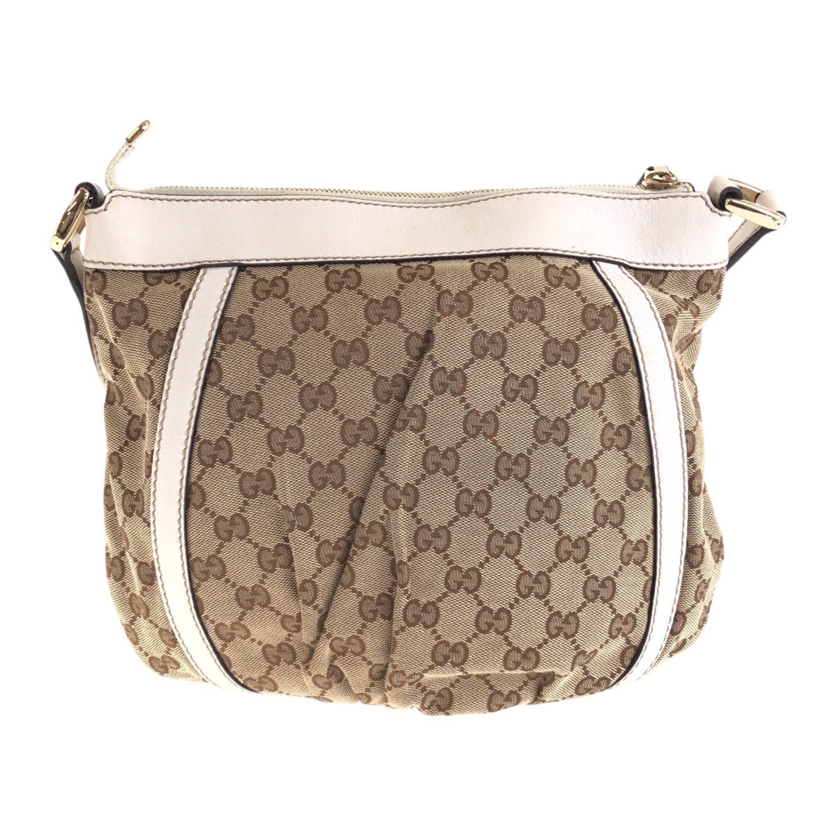 GUCCI Shoulder Bag 203257 GG canvas, leather Beige White Gold Metal Crossbody Shoulder Bag Women Used Authentic