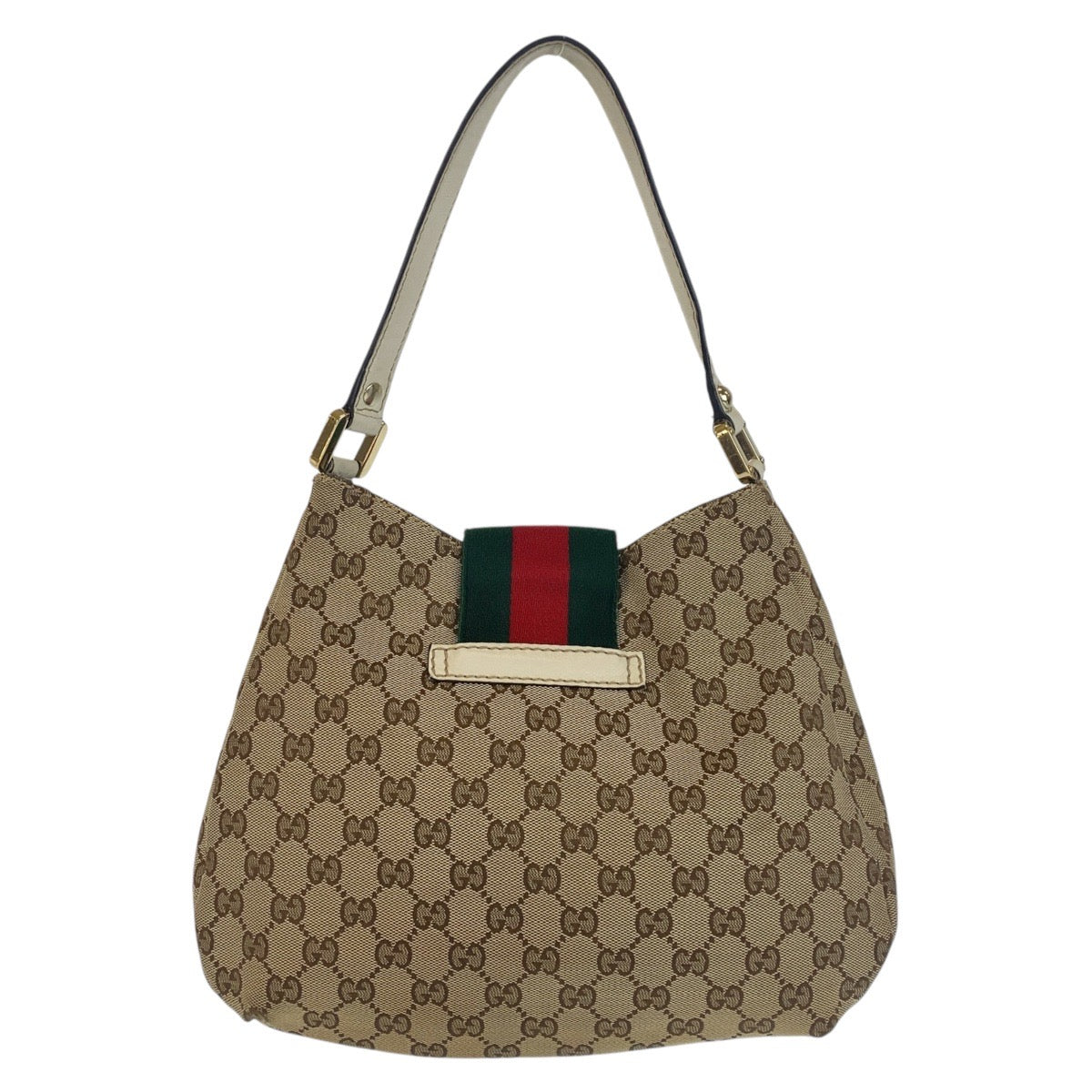 GUCCI Shoulder Bag 211934 GG canvas, leather Beige Gold Metal Sherry line Women Used Authentic