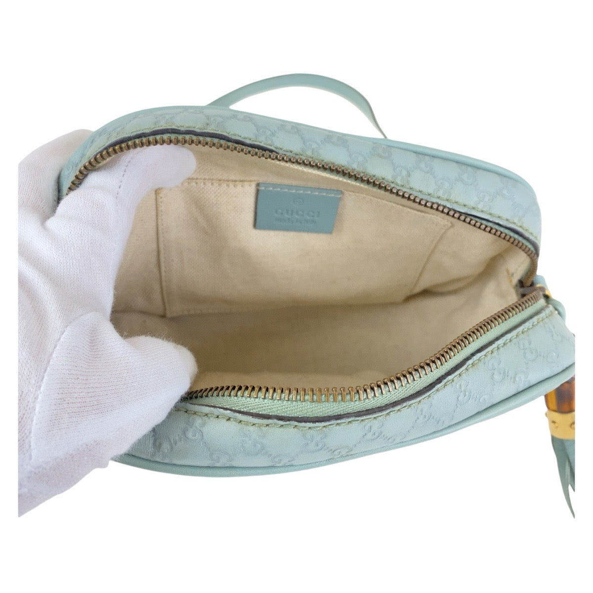 GUCCI Shoulder Bag 309538 leather Blue GoldMetal Crossbody Shoulder Bag Pochette Micro Guccissima Bamboo Women Used Authentic