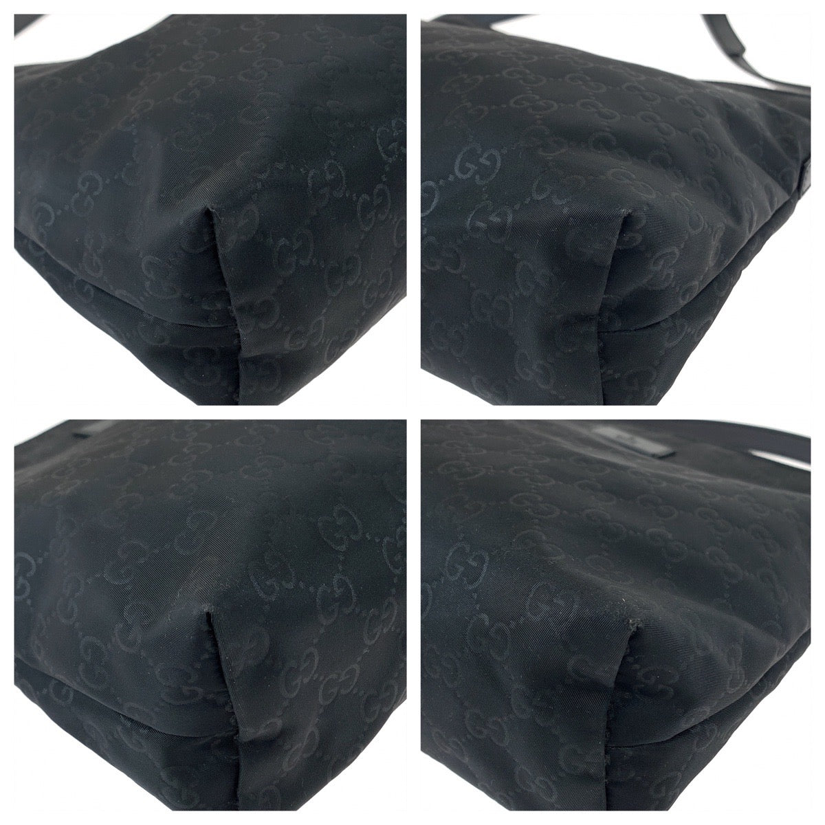 GUCCI Shoulder Bag 314529 Nylon, Leather Black Silver Metal Crossbody Shoulder Bag Messenger Bag Embossed nylon GG pattern mens Used Authentic