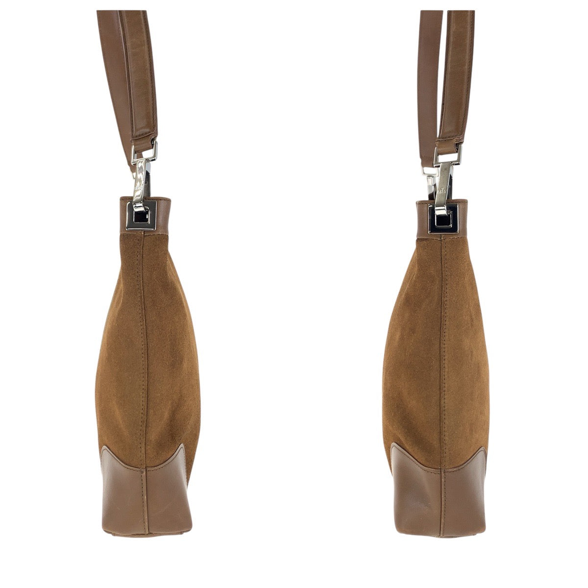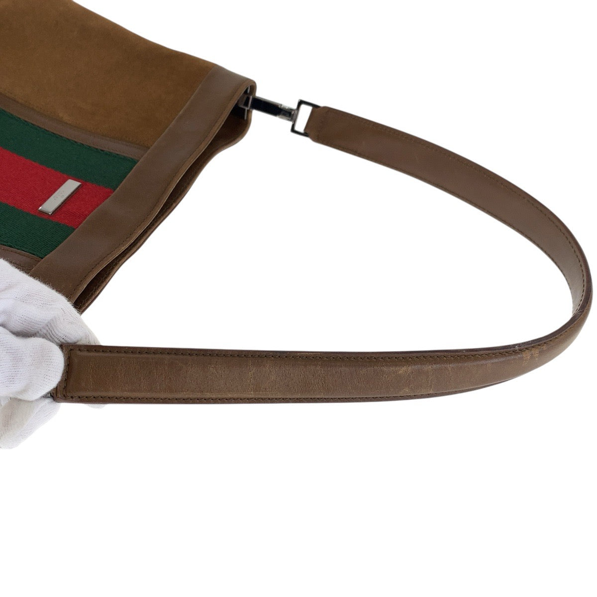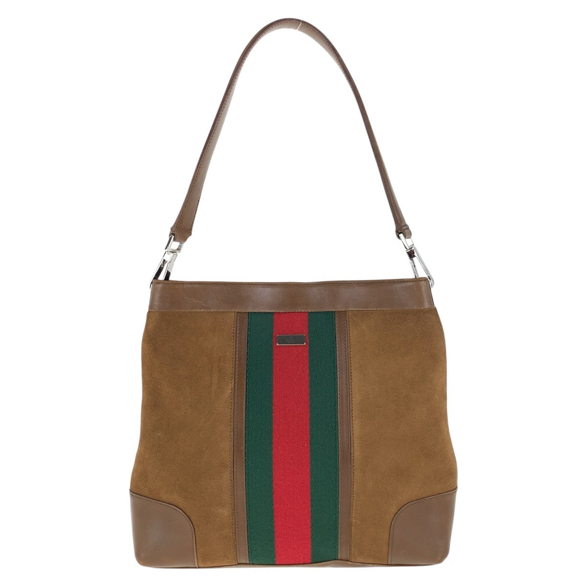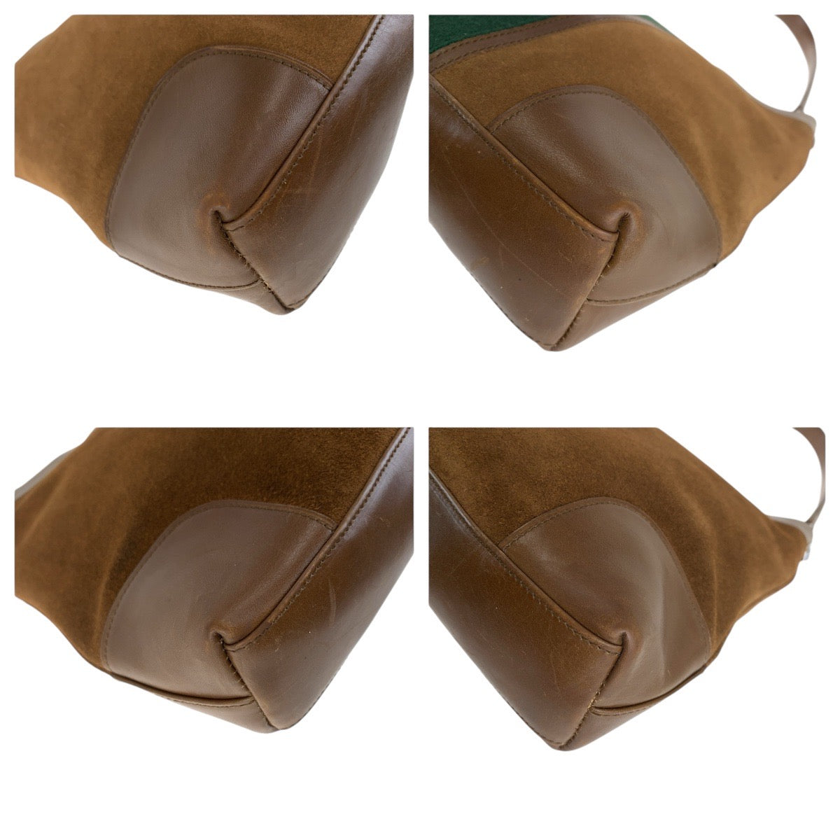 GUCCI Shoulder Bag 33900 Suede, Leather Brown Silver Metal Sherry line Women Used Authentic