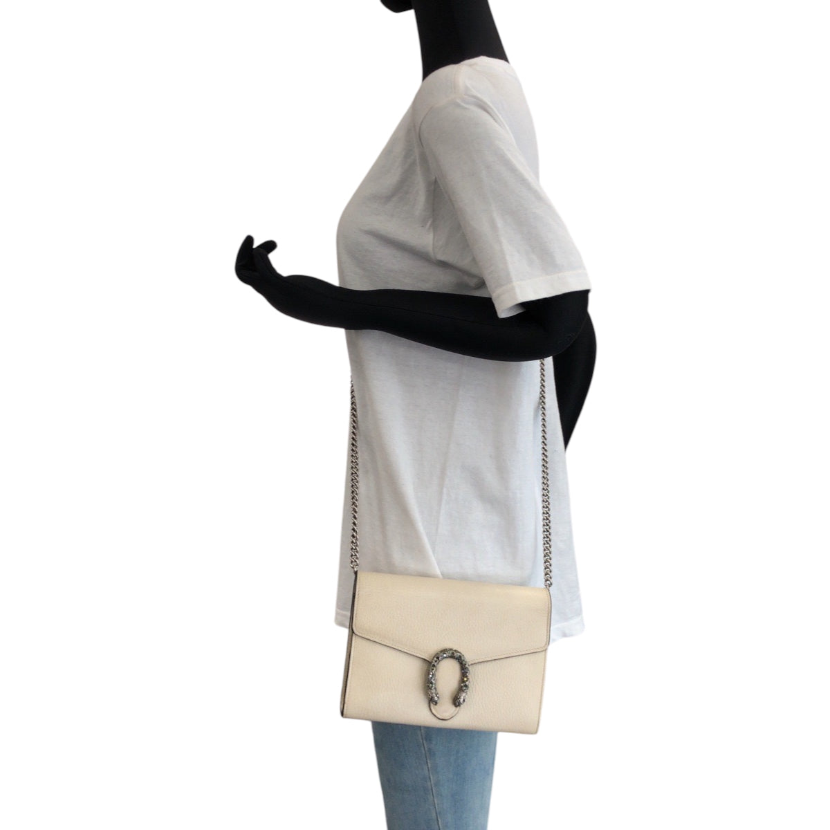 GUCCI Shoulder Bag 401231 leather White SilverMetal ChainShoulder Bag Dionysus Women Used Authentic