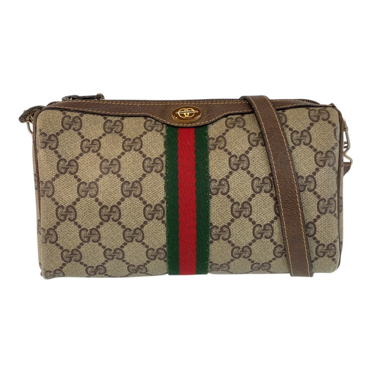 GUCCI Shoulder Bag 41 004 4465 GG Supreme Canvas Beige Brown Gold Metal Sherry Line Old Gucci