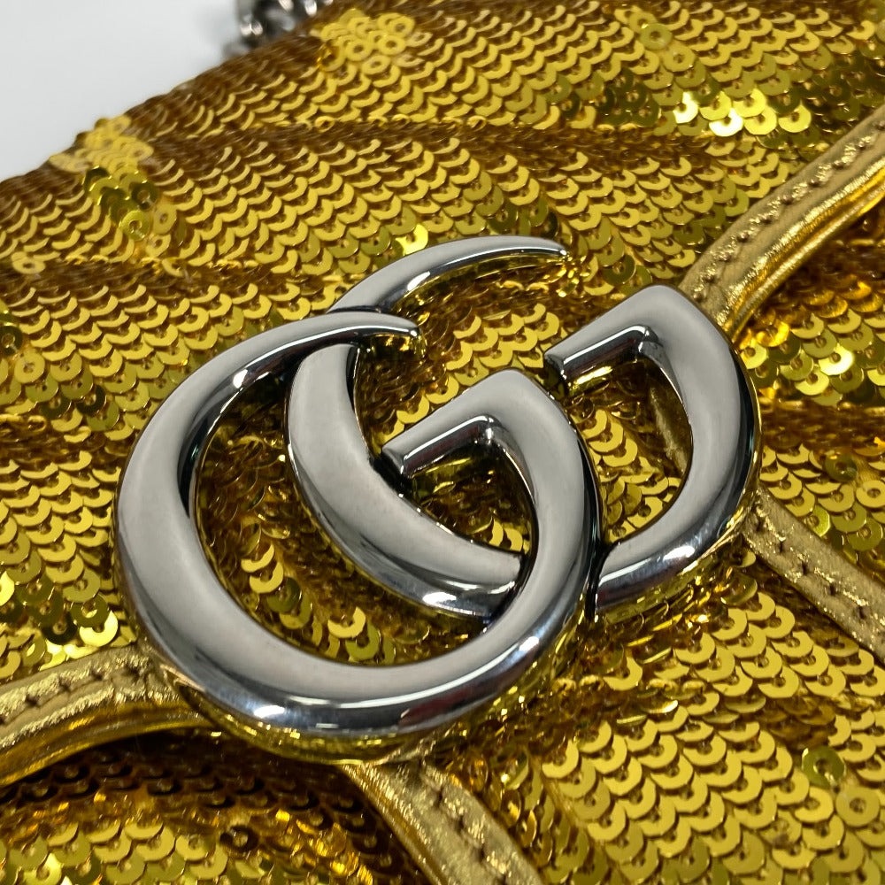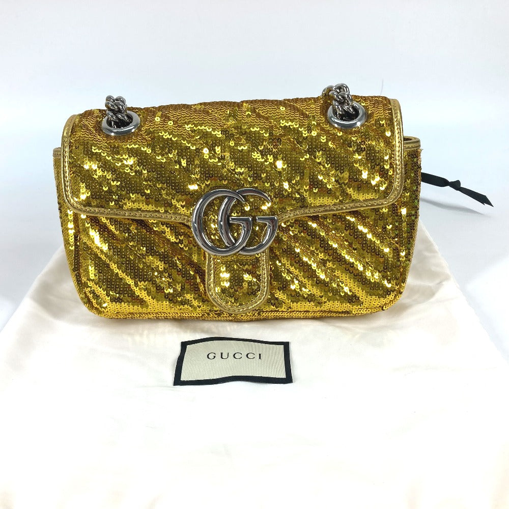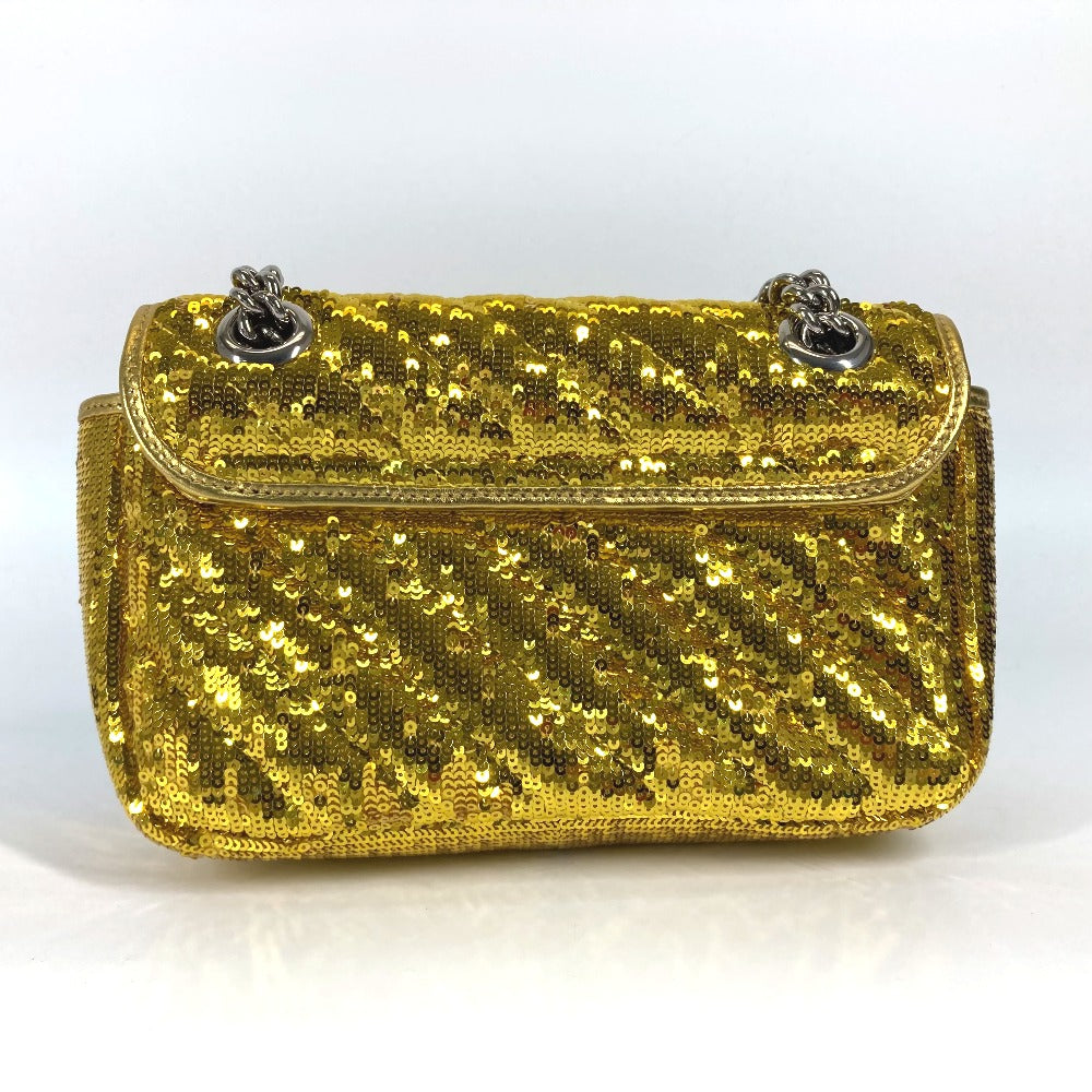 GUCCI Shoulder Bag 446744 Sequin / Leather Yellow Gold GG Marmont Sequin Women Used Authentic