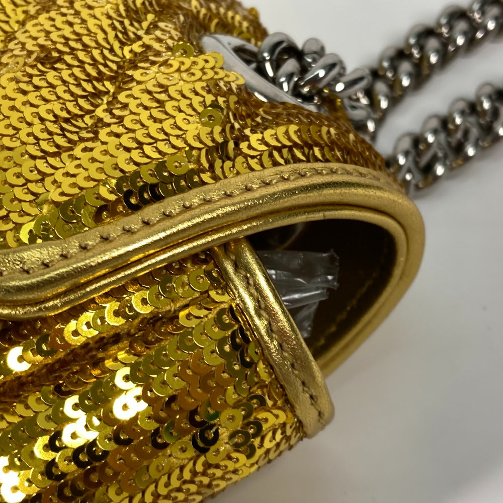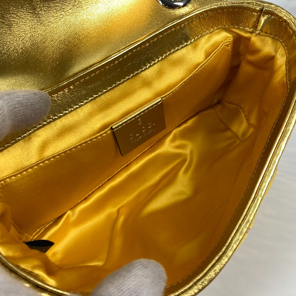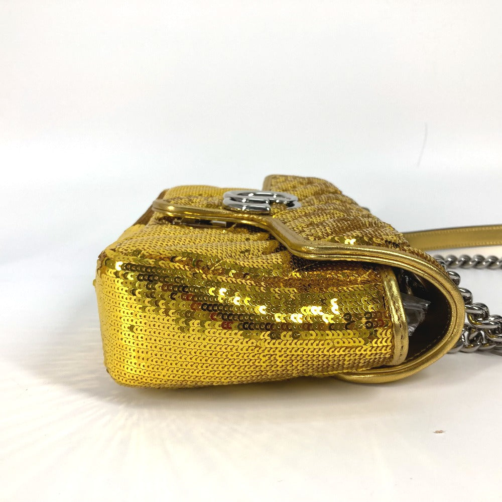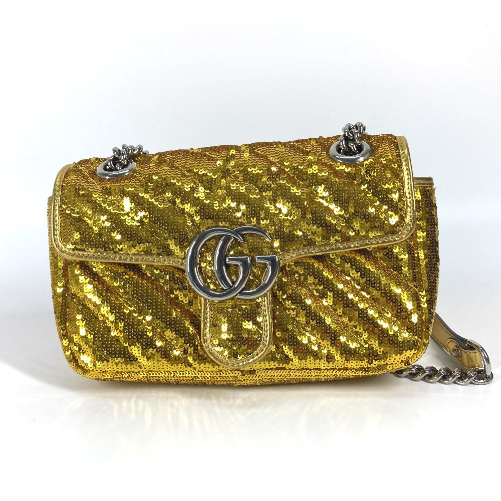 GUCCI Shoulder Bag 446744 Sequin / Leather Yellow Gold GG Marmont Sequin Women Used Authentic