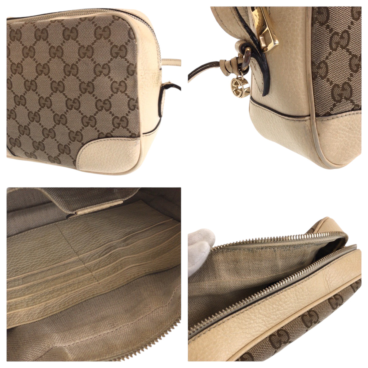 GUCCI Shoulder Bag 449413 GG canvas Beige Ivory Gold Metal Shoulder Bag pochette Women Used Authentic