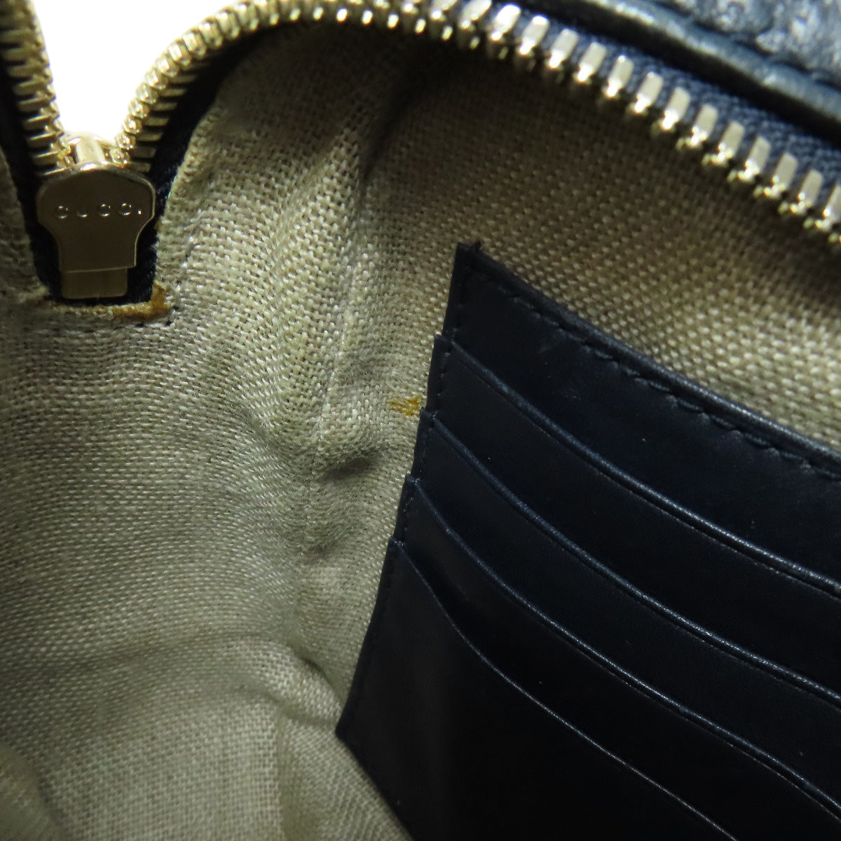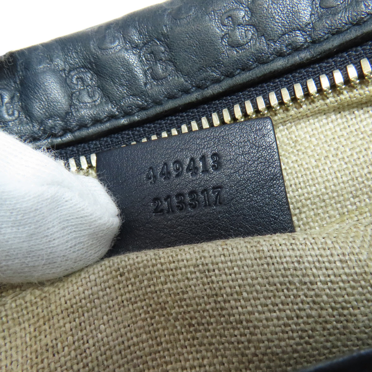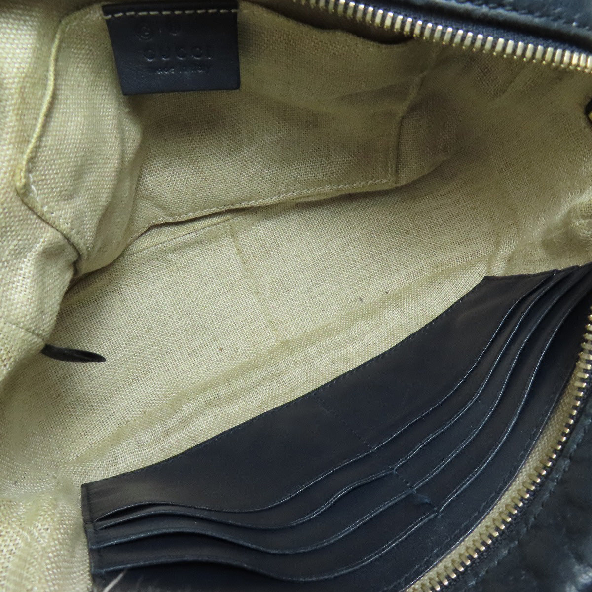 GUCCI Shoulder Bag 449413 leather Navy GG Signature Microsima Outlet Women Used Authentic