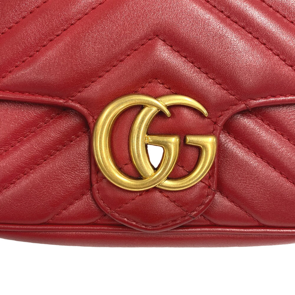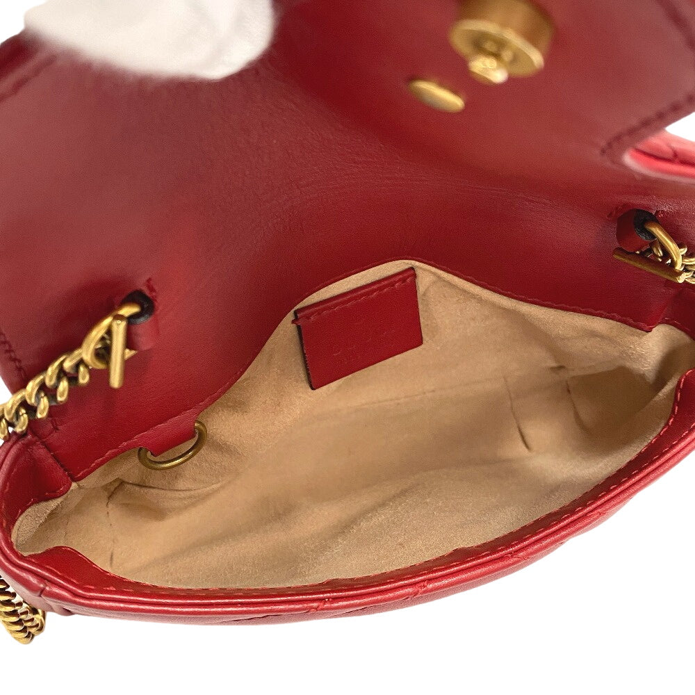 GUCCI Shoulder Bag 476433 leather Red ChainShoulder GG Marmont Women Used Authentic