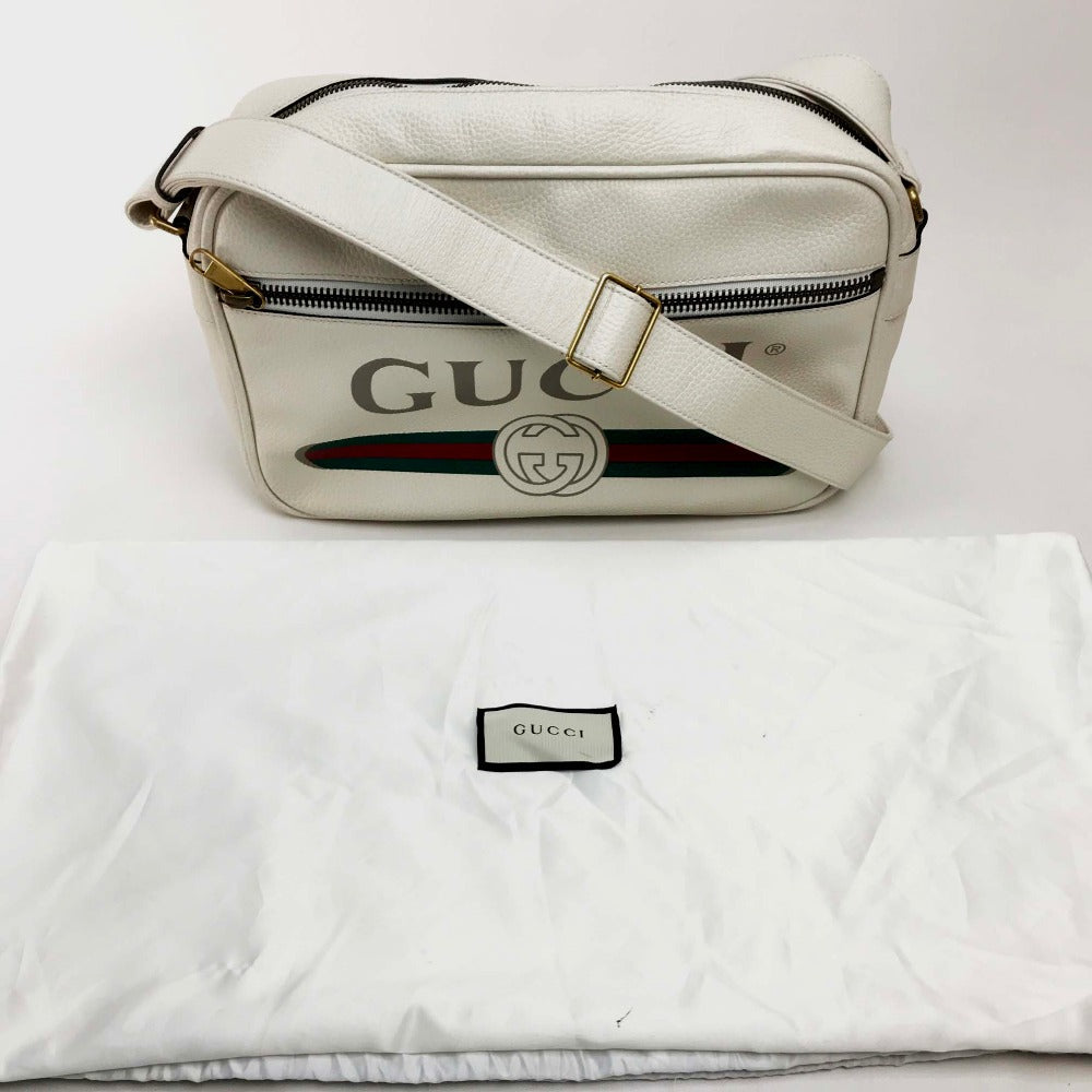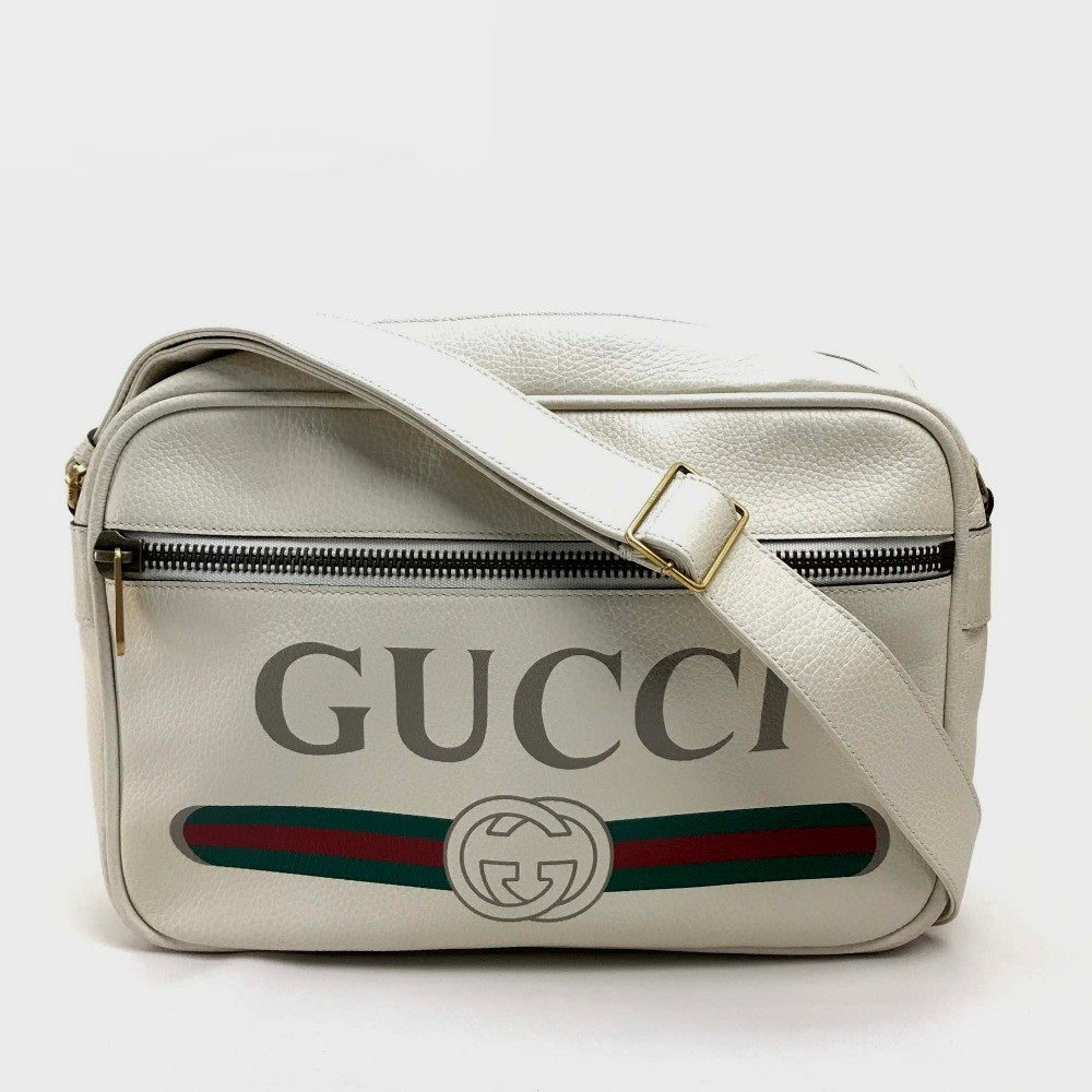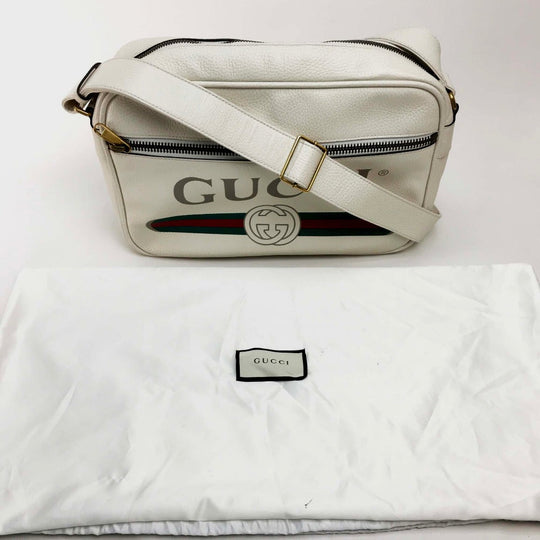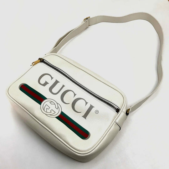 GUCCI Shoulder Bag 523589 leather white Logo print Women Used Authentic