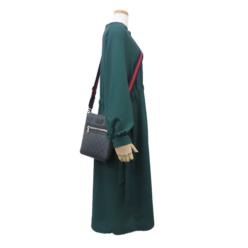 GUCCI Shoulder Bag 523599 GG Supreme canvas, leather black Small messenger bag mens Used Authentic