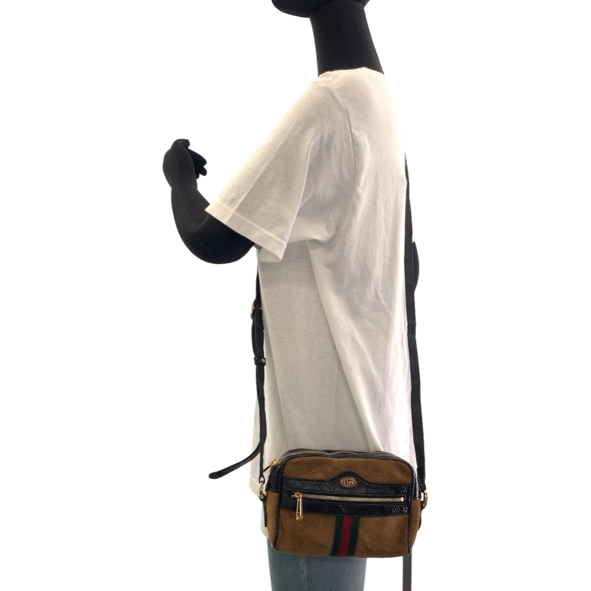 GUCCI Shoulder Bag 573321 Suede, Leather Brown Red Green GoldMetal Shoulder Bag pochette Ofidia Women Used Authentic