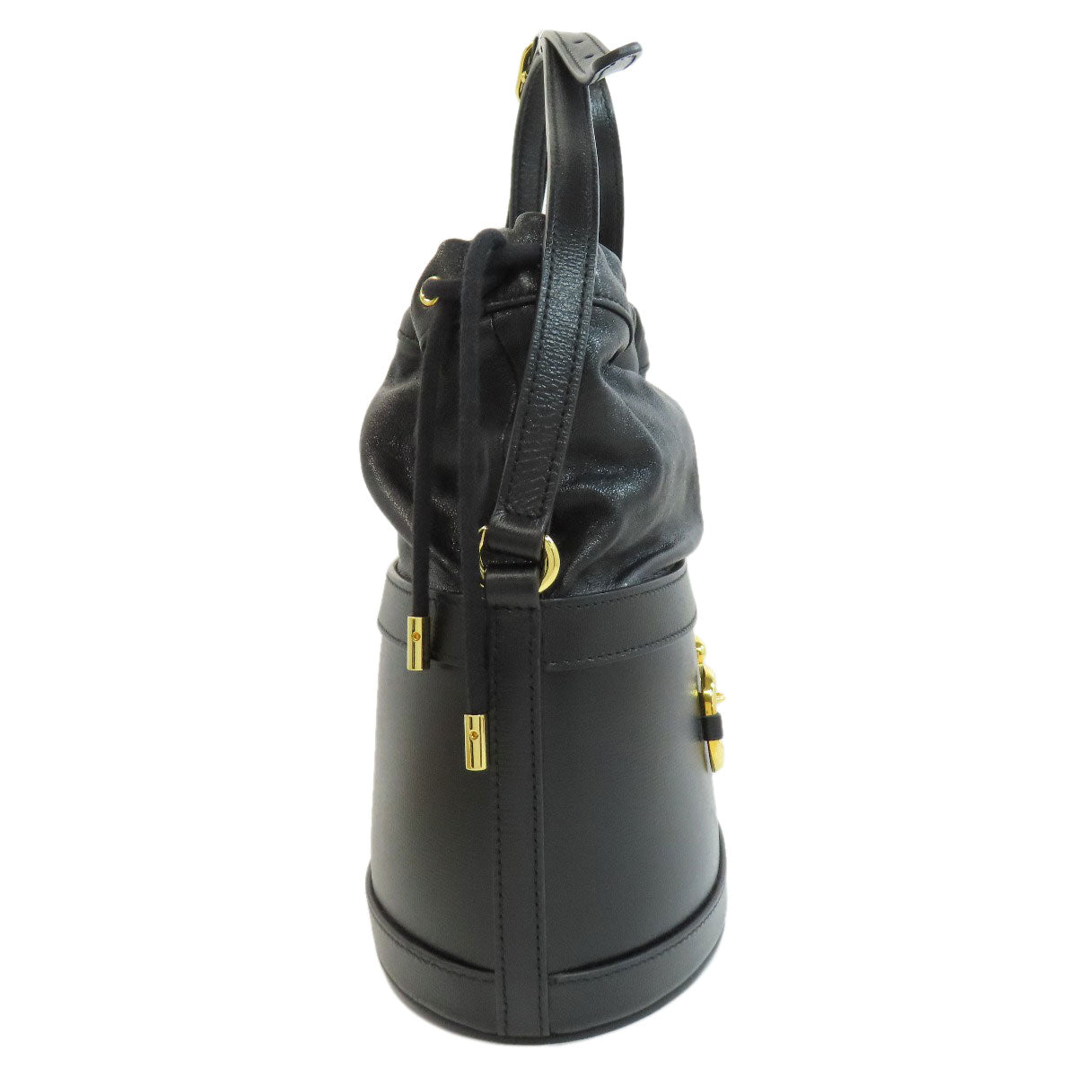 GUCCI Shoulder Bag 602118 leather black Horsebit Bucket Bag Long Shoulder Women Used Authentic