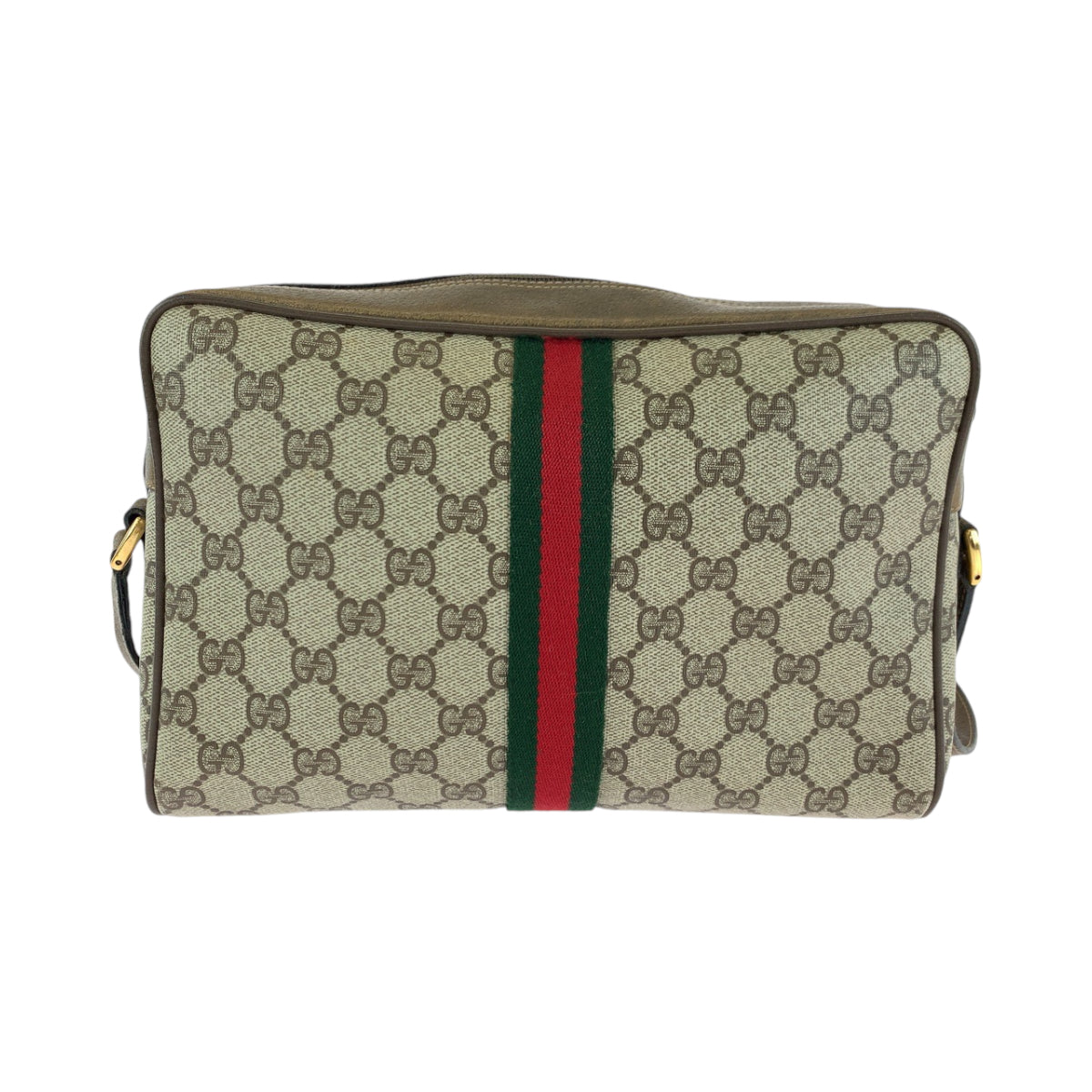 GUCCI Shoulder Bag 98 02 005 GG Supreme Canvas Beige Brown Gold Metal Shoulder Bag pochette Sherry Line Old Gucci Women Used Authentic