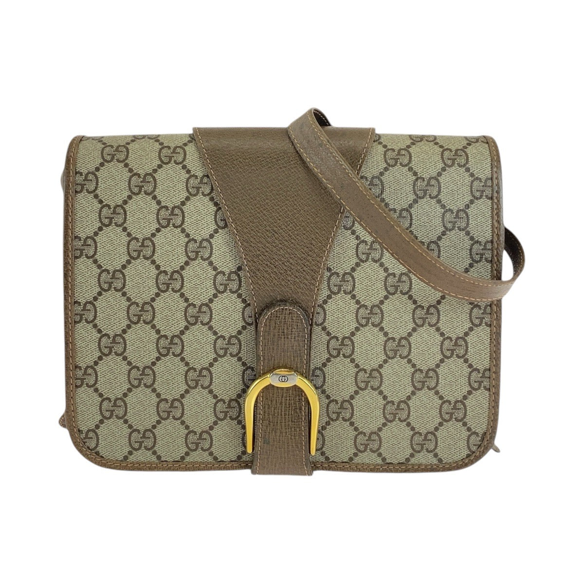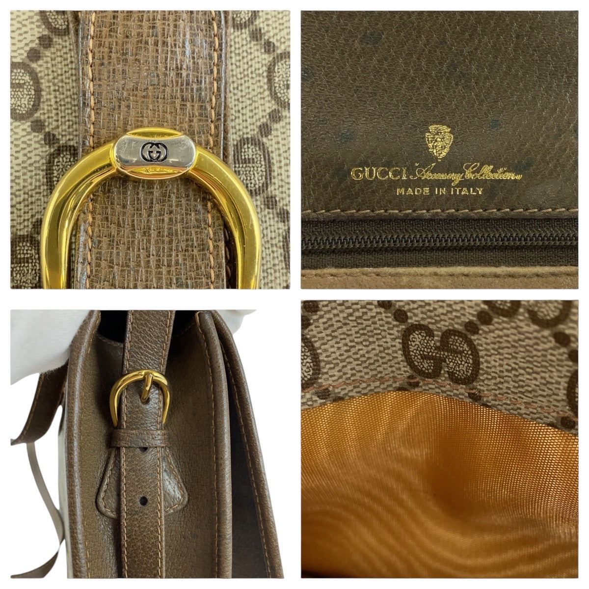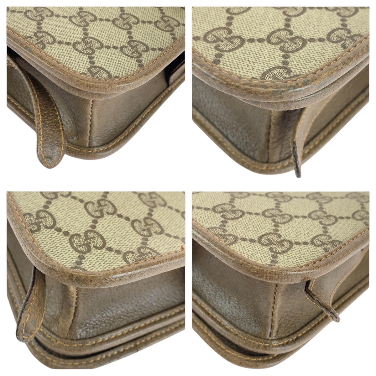GUCCI Shoulder Bag GG canvas, leather Brown Gold Metal Crossbody Shoulder Bag Old Gucci Women Used Authentic