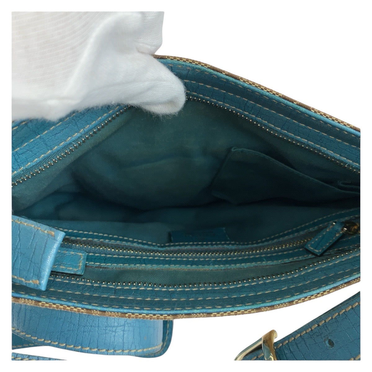 GUCCI Shoulder Bag GG canvas, leather Light Blue Beige Gold Metal Shoulder Bag pochette Sherry line horsebit Women Used Authentic