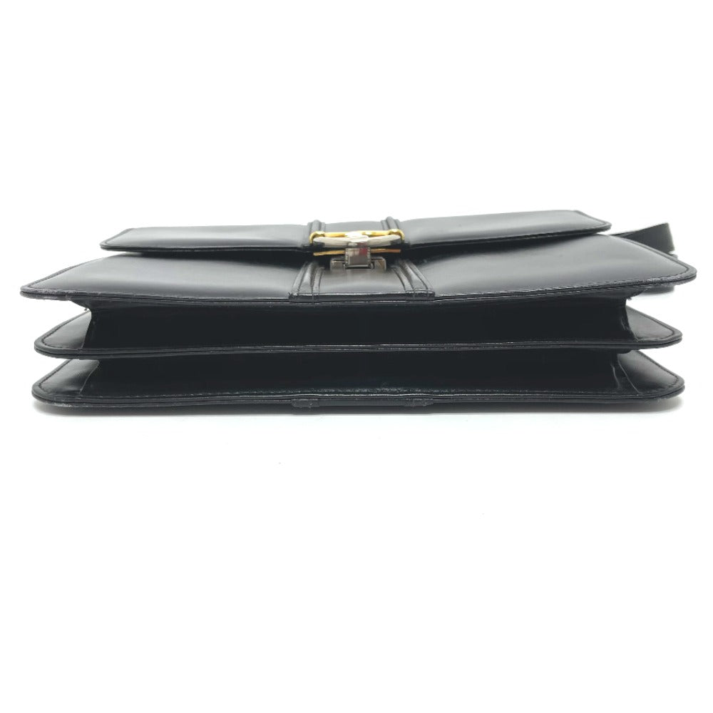 GUCCI Shoulder Bag leather black GGMetal Old Gucci Women Used Authentic