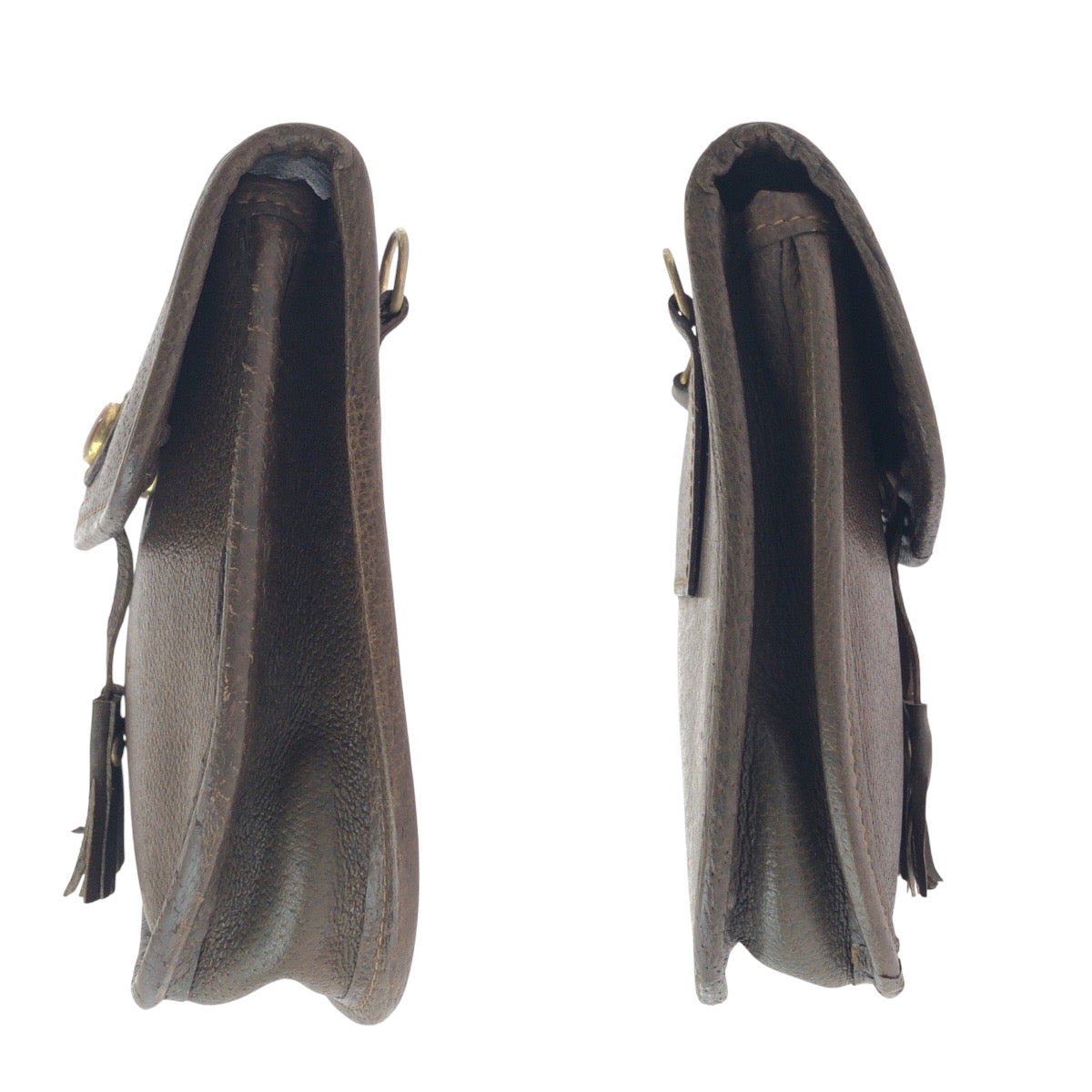 GUCCI Shoulder Bag leather Brown Gold Metal Shoulder Bag pochette Old Gucci Women Used Authentic