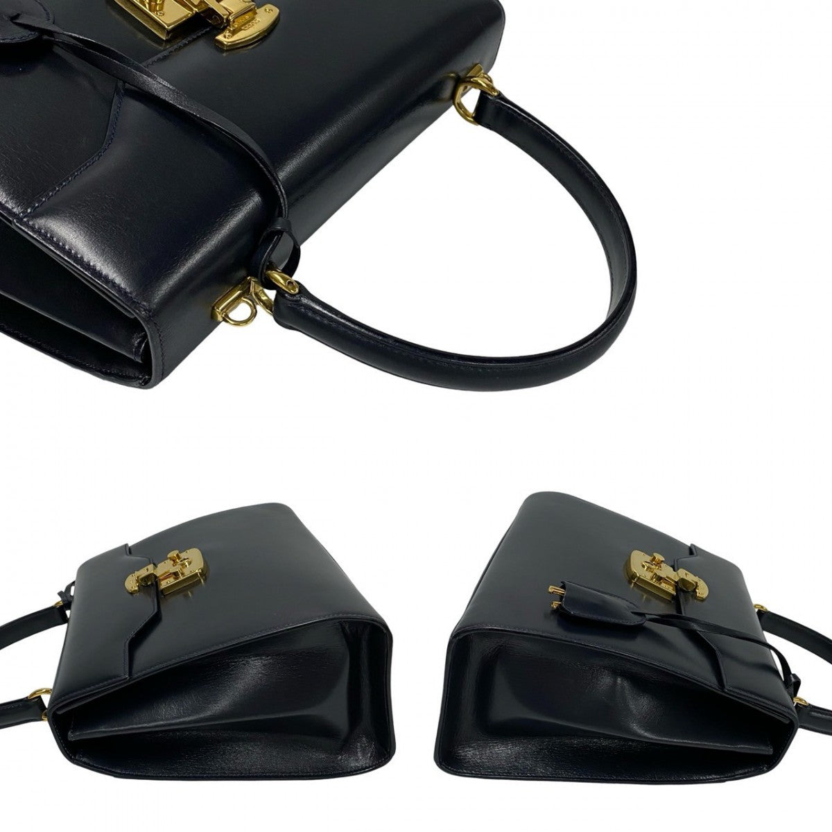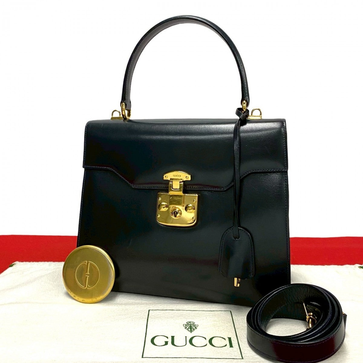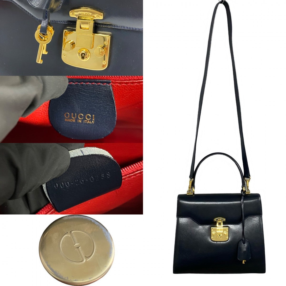GUCCI Shoulder Bag leather Navy Ready lock