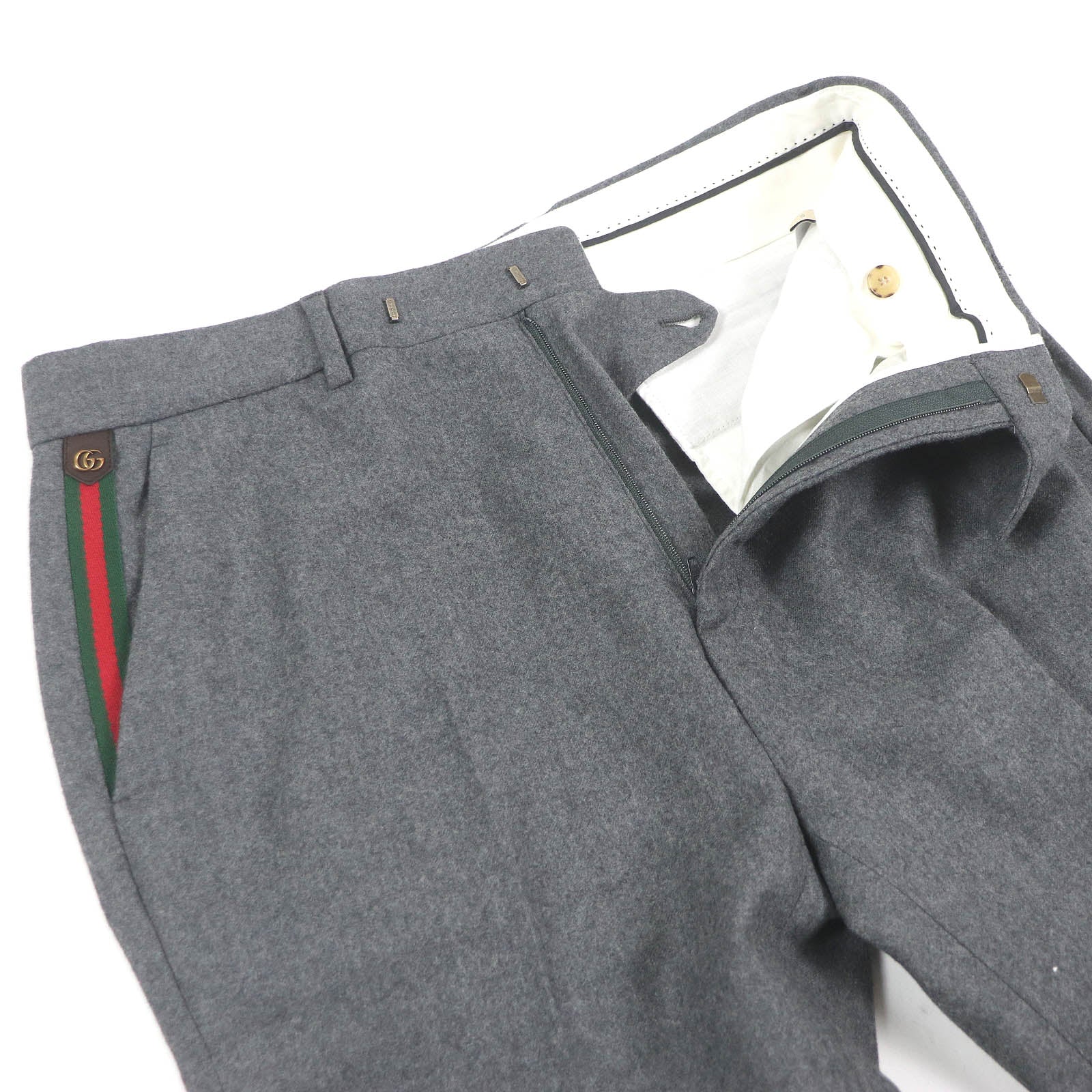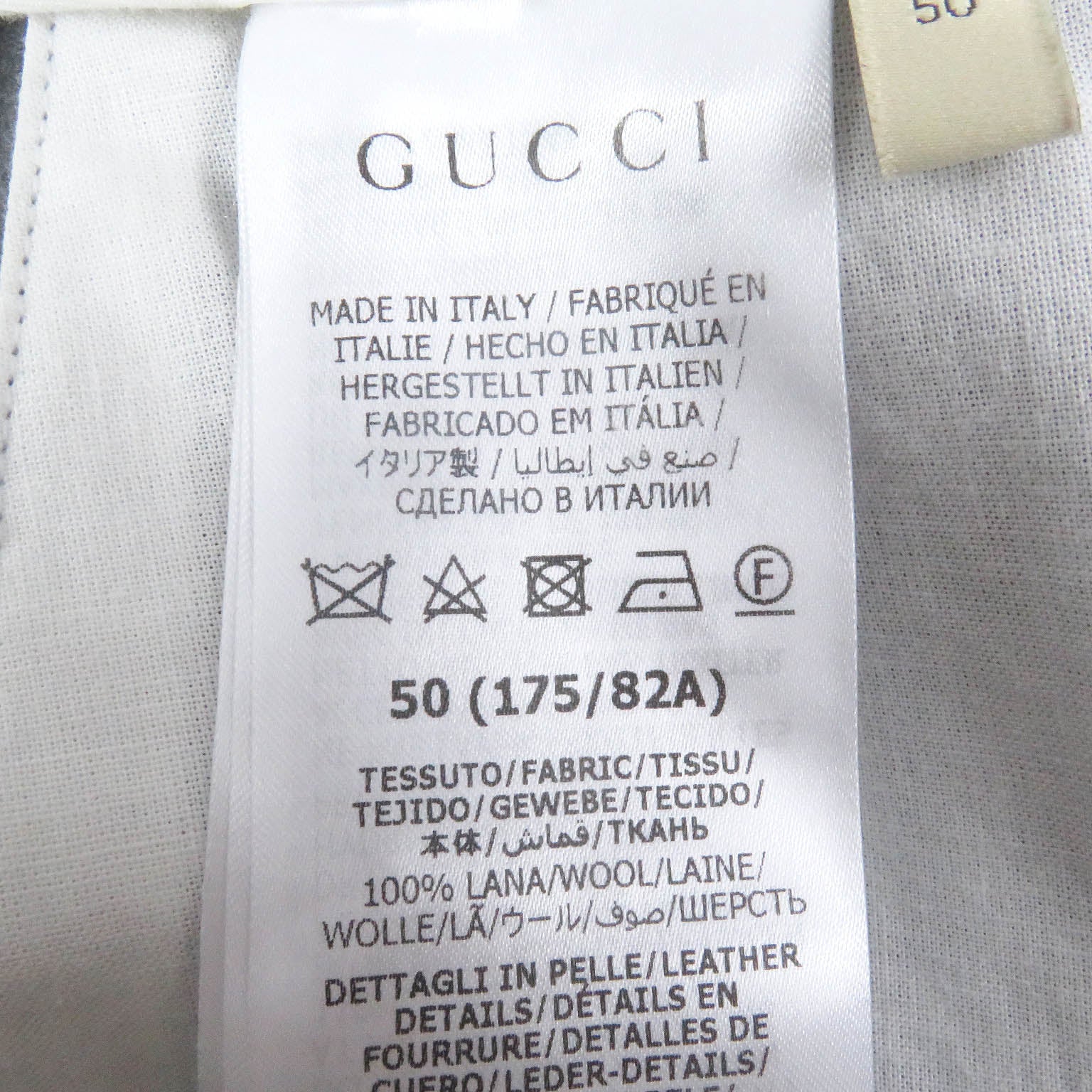 GUCCI slacks 698813 Outer material: 100% wool, leather part: cowhide gray mens 50 Used Authentic