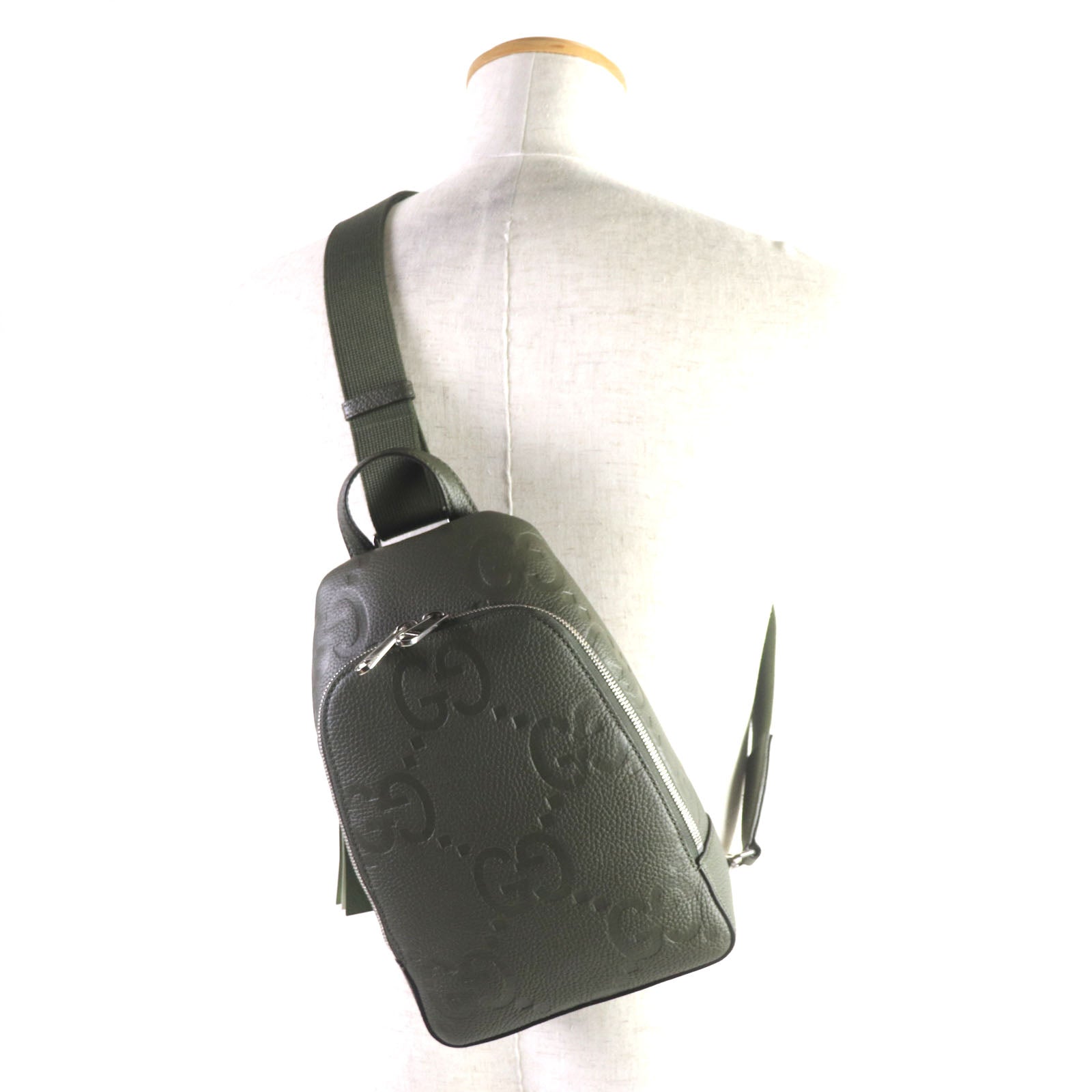 GUCCI Sling bag 766937 Main: Leather Khaki (dark green) Jumbo GG mens Used Authentic