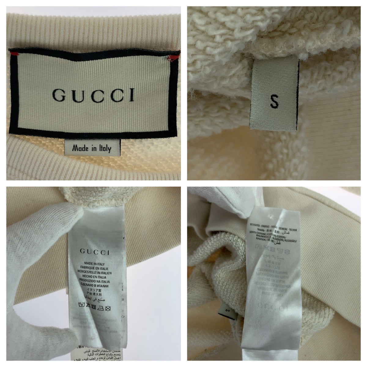 GUCCI sweat 475532 XJAKP cotton White Red Green Sweatshirt trainer GUCCY Wing Jockey mens S Used Authentic