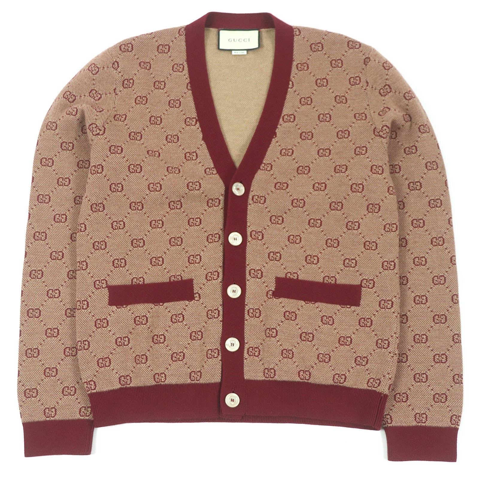 GUCCI sweater 572631 Main: 78% wool, Main: 22% cotton, Part: 94% cotton, Part: 5% nylon, Part: 1% polyurethane Bordeaux mens S Used Authentic