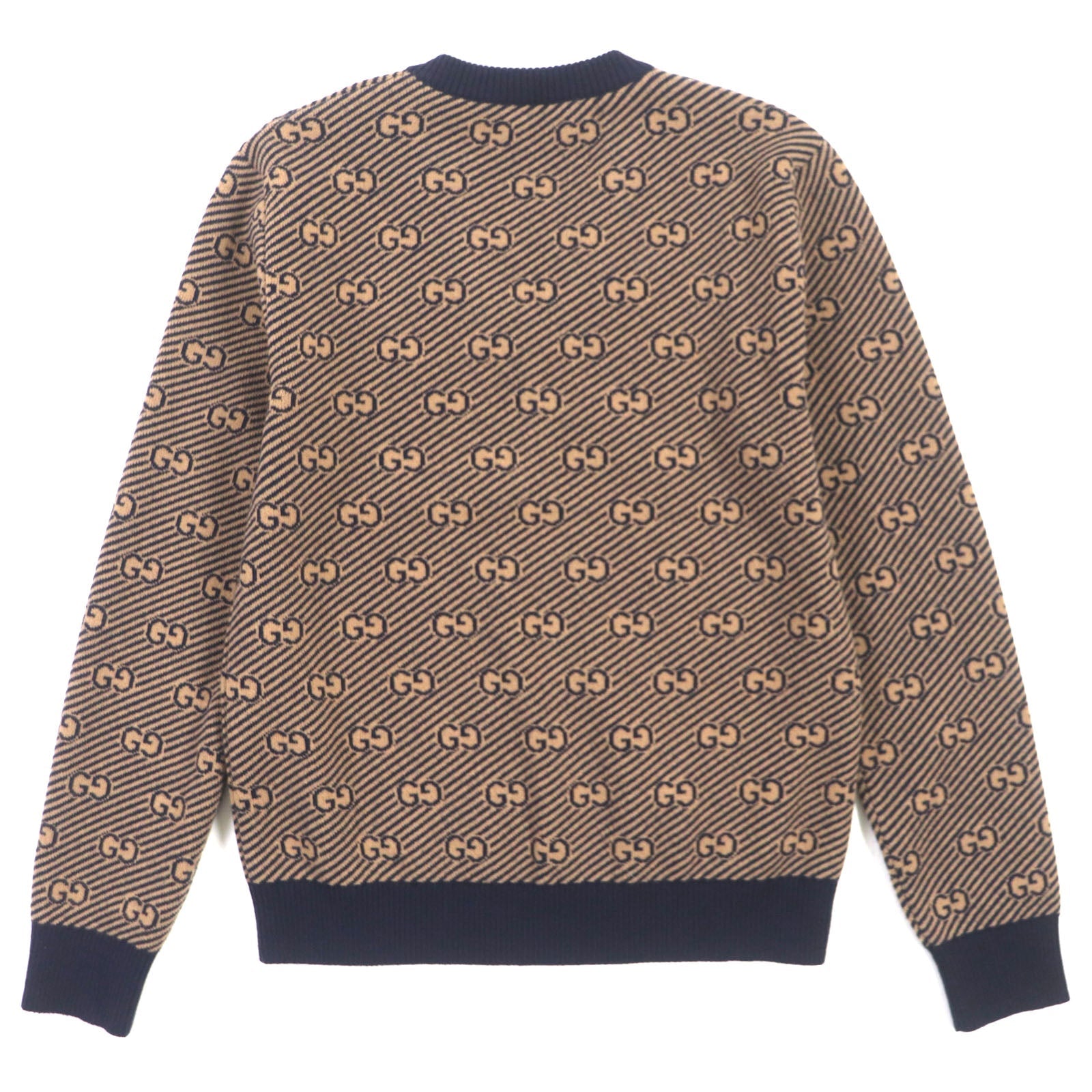 GUCCI sweater 626643 Main: 90% wool, Main: 10% cashmere, Part: 86% wool, Part: 13% nylon, Part: 1% polyurethane Brown navy mens XS Used Authentic