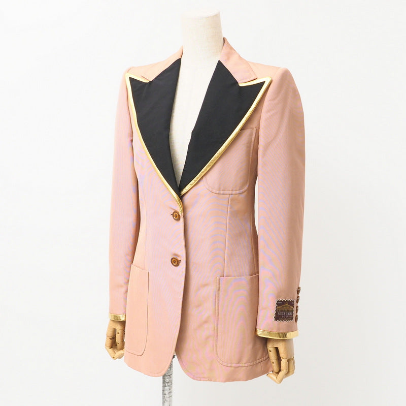 GUCCI tailored jacket 621256 55% cotton, 45% rayon Pink/Black/Gold Women 38�i160/84Y�j Used Authentic