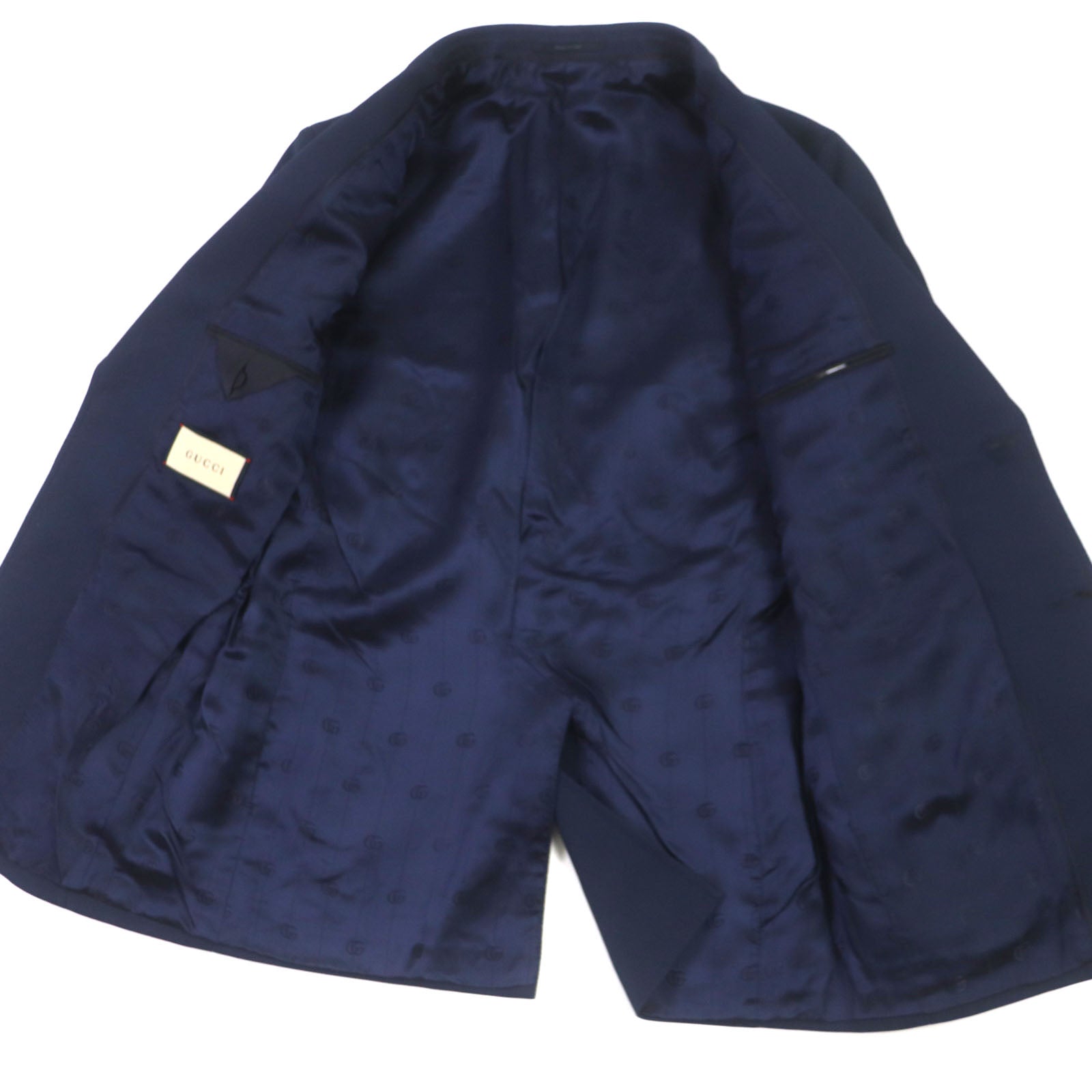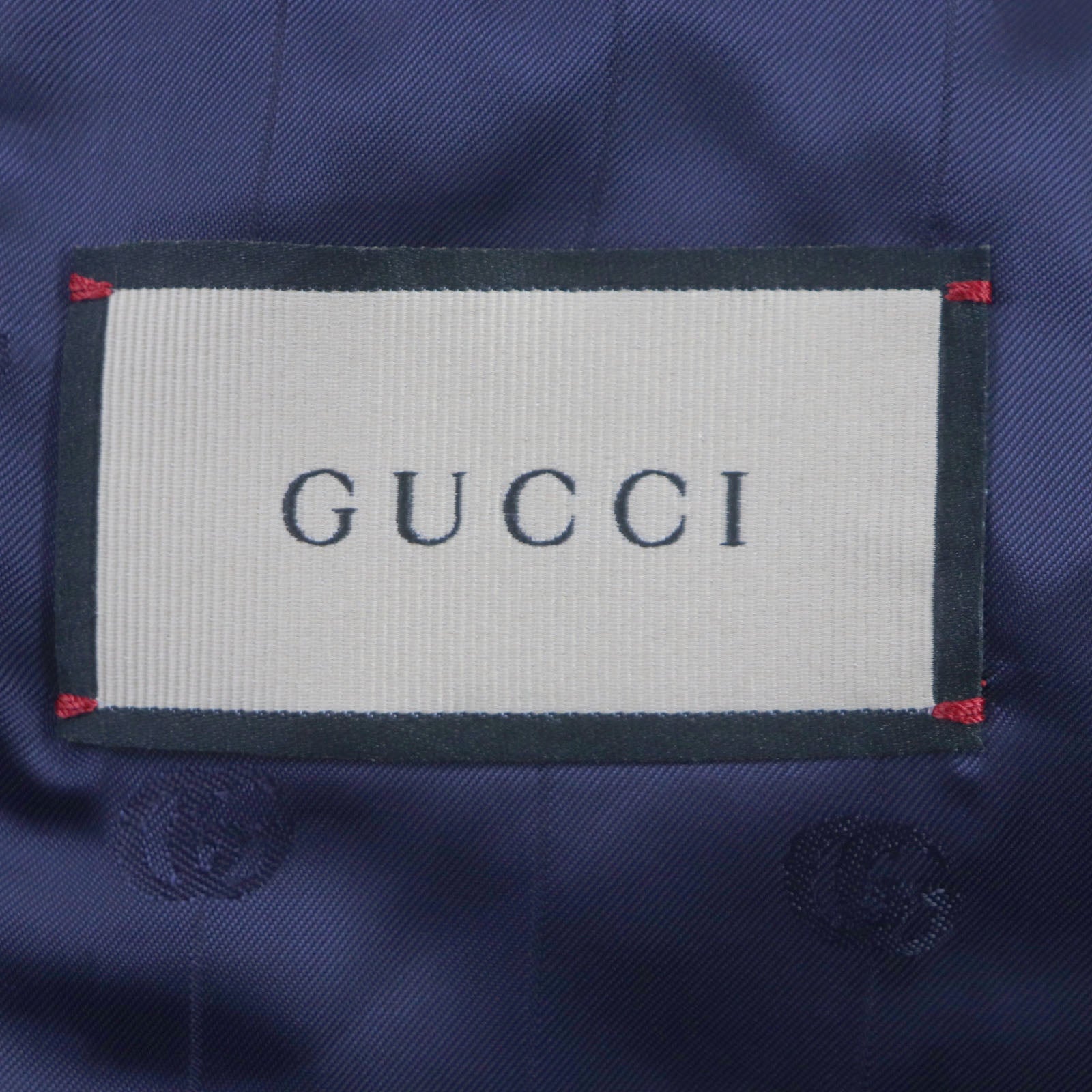 GUCCI tailored jacket 751155 Main: 100% cotton, Lining: 100% rayon, Parts: 100% rayon, Applique: 35% acrylic, 35% alpaca, 30% polyester Navy Cotton formal jacket with Web stripe detail mens 46 Used Authentic