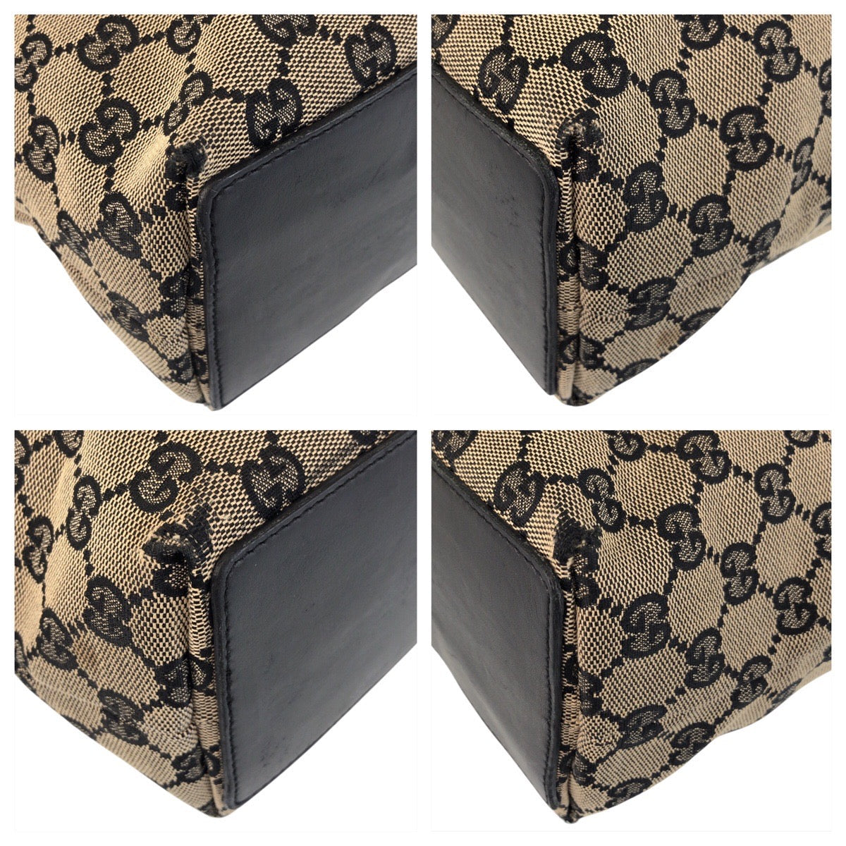 GUCCI Tote Bag 002 1099 GG canvas, leather Beige Black Gold Metal Tote Bag Shoulder Bag Women Used Authentic