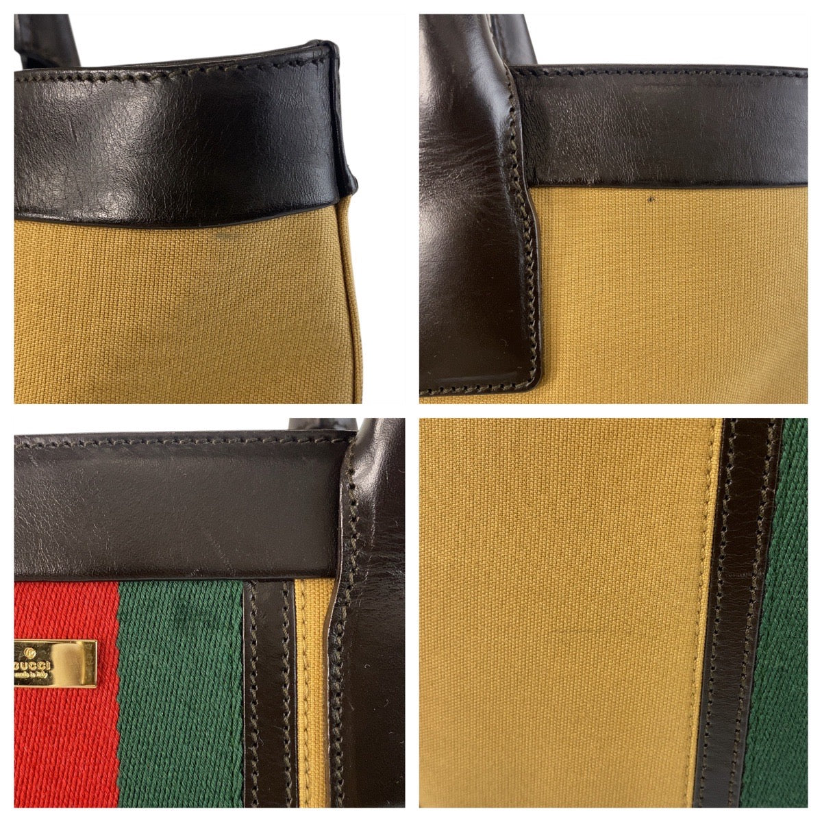 GUCCI Tote Bag 002 1121 Canvas, Leather beige Sherry line Women Used Authentic