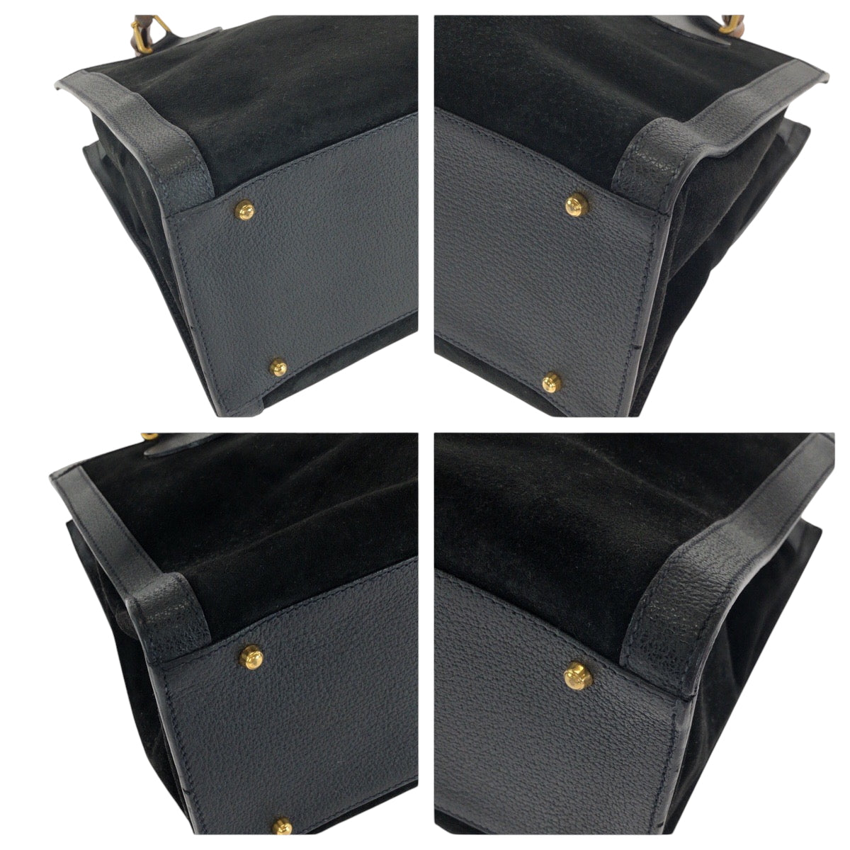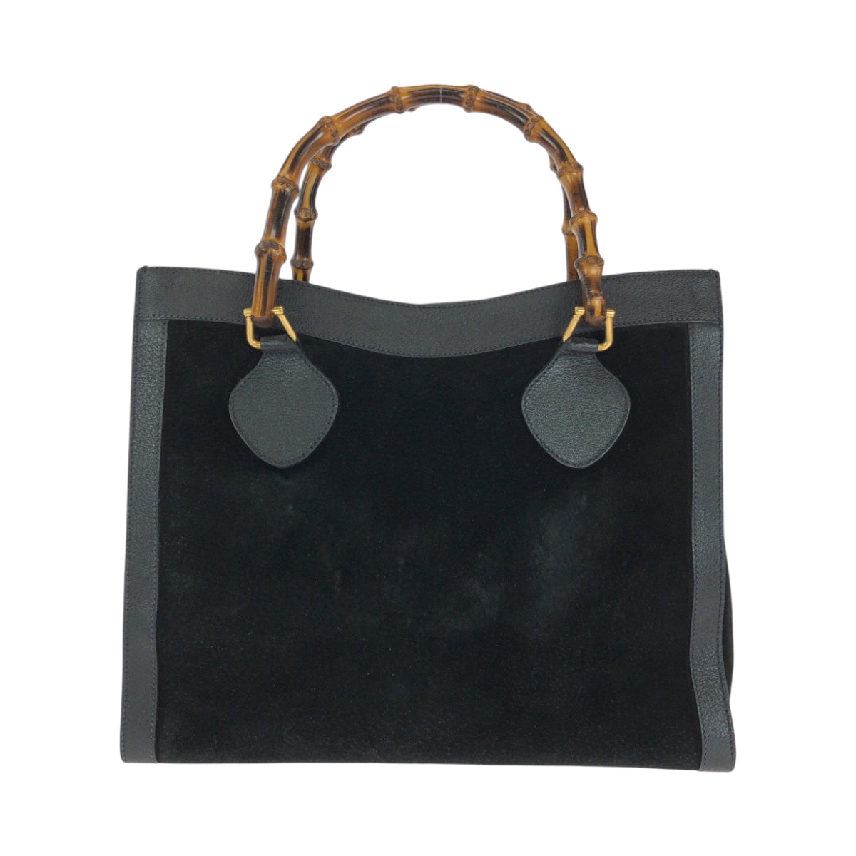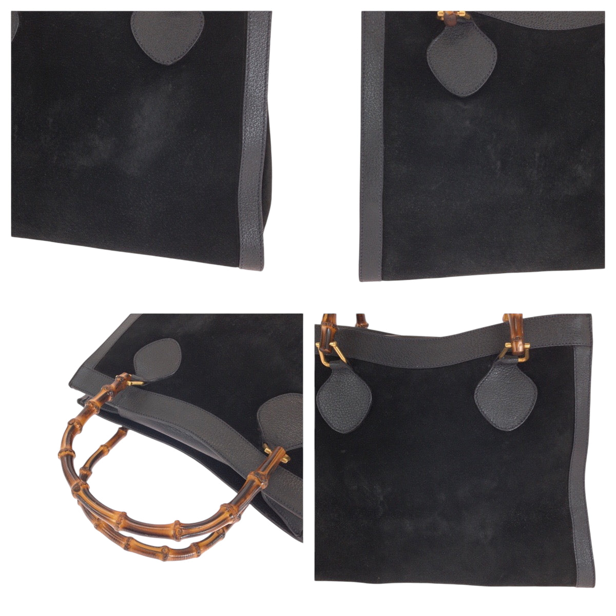 GUCCI Tote Bag 002 1186 0260 Suede Black Brown Gold Metal Tote Bag handbag Bamboo Diana Women Used Authentic