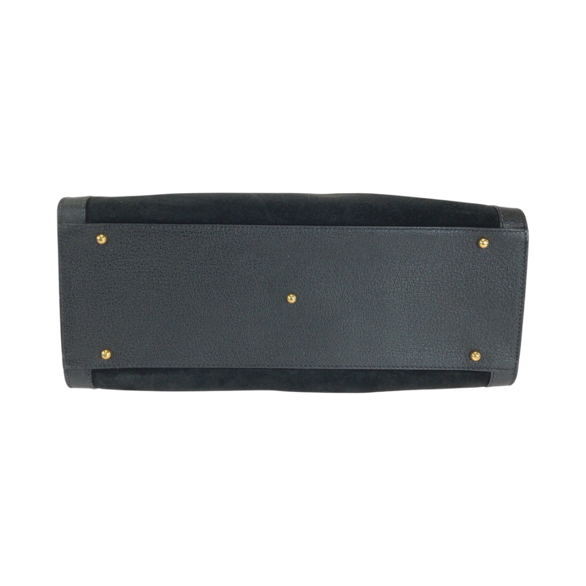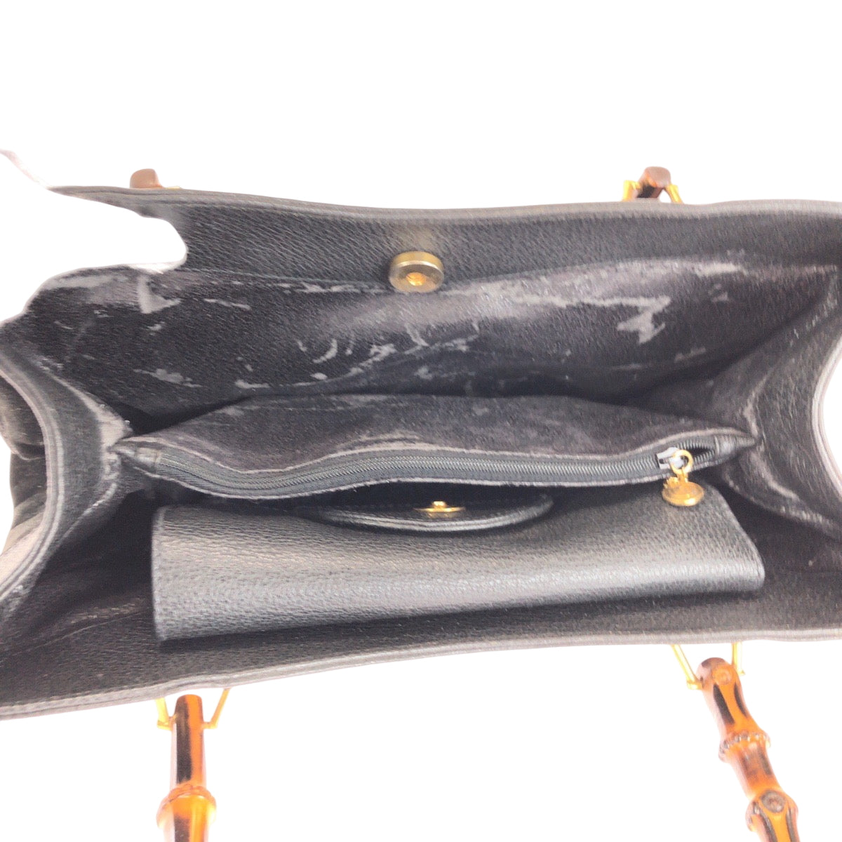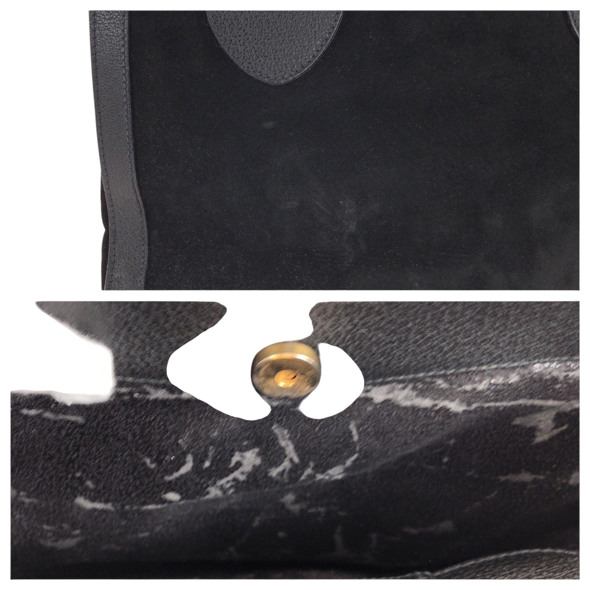 GUCCI Tote Bag 002 1186 0260 Suede Black Brown Gold Metal Tote Bag handbag Bamboo Diana Women Used Authentic