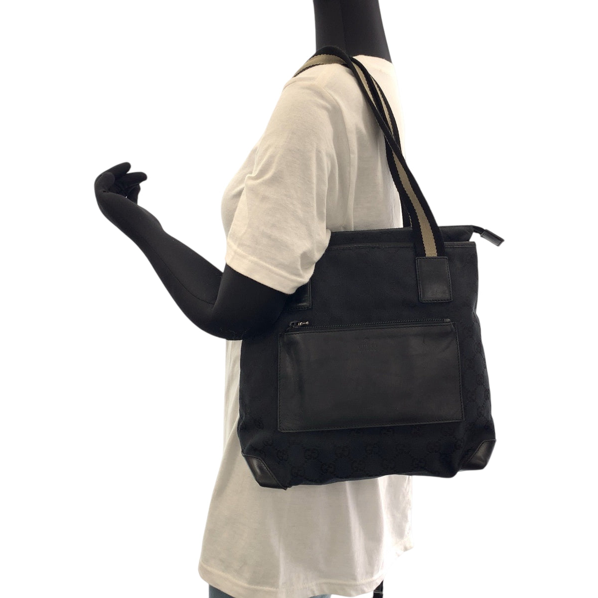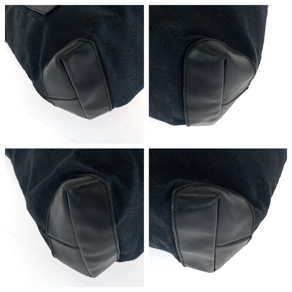 GUCCI Tote Bag 019 0402 GG canvas Black Beige SilverMetal Tote Bag Shoulder Bag Women Used Authentic