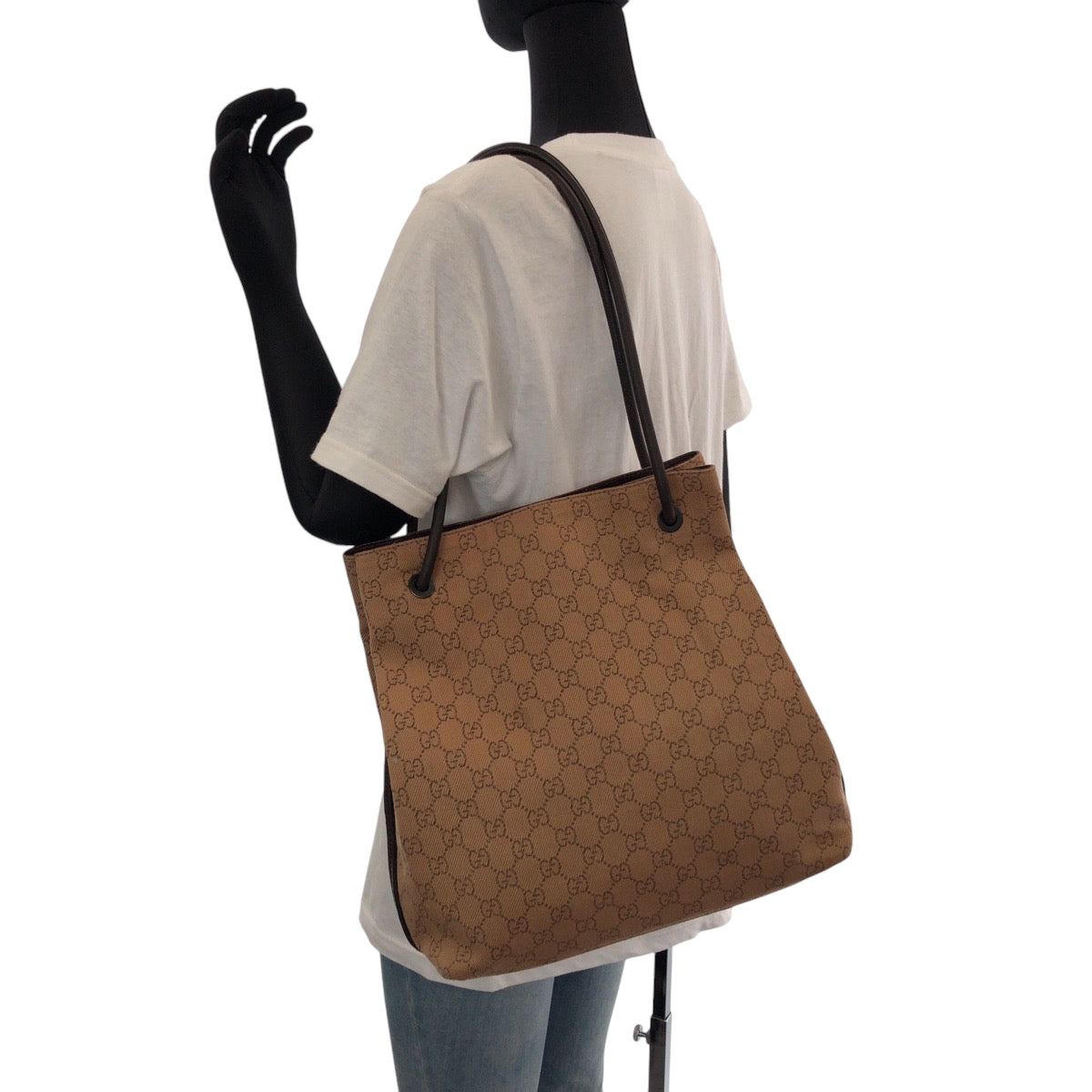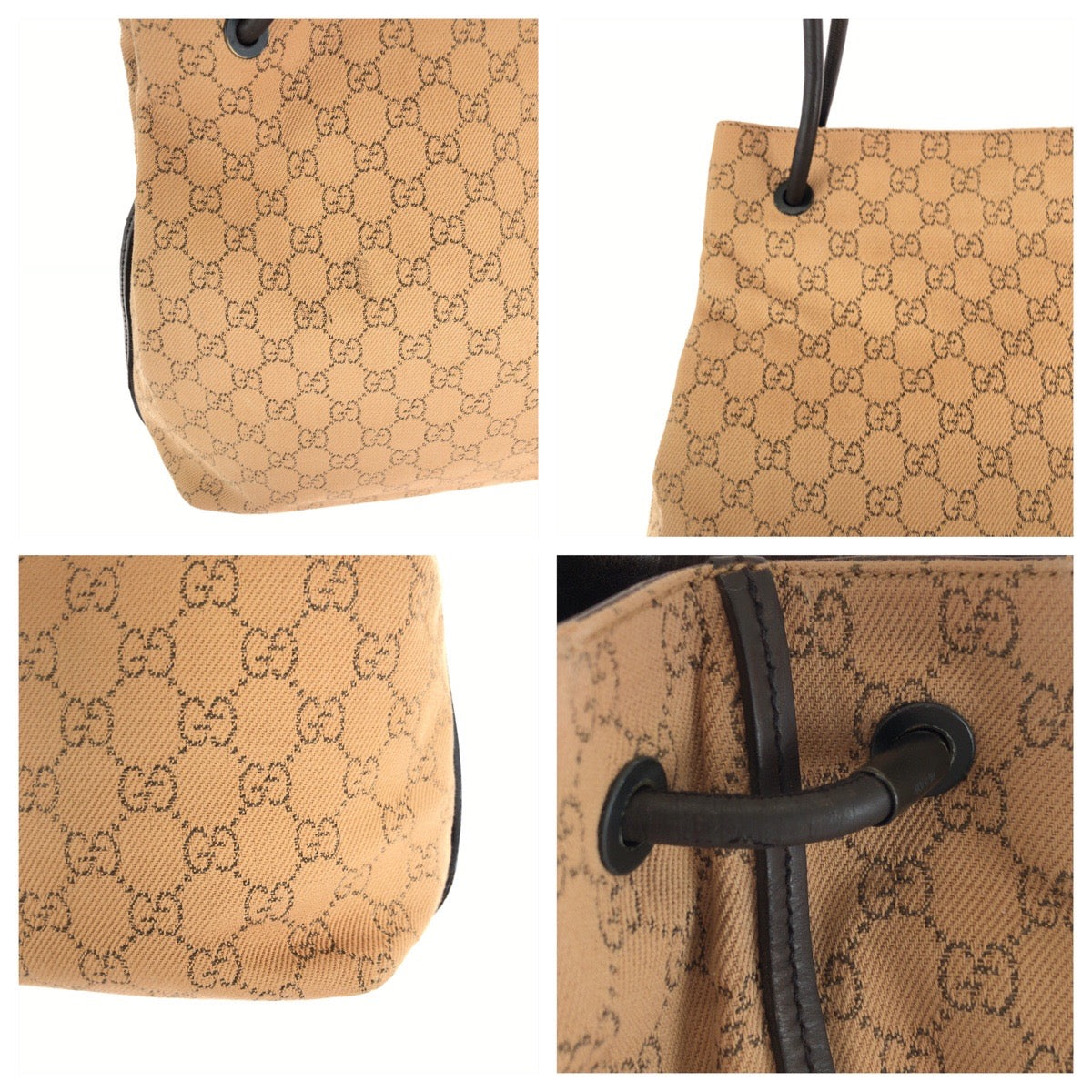 GUCCI Tote Bag 101341 canvas Brown Black Metal Tote Bag Shoulder Bag Women Used Authentic