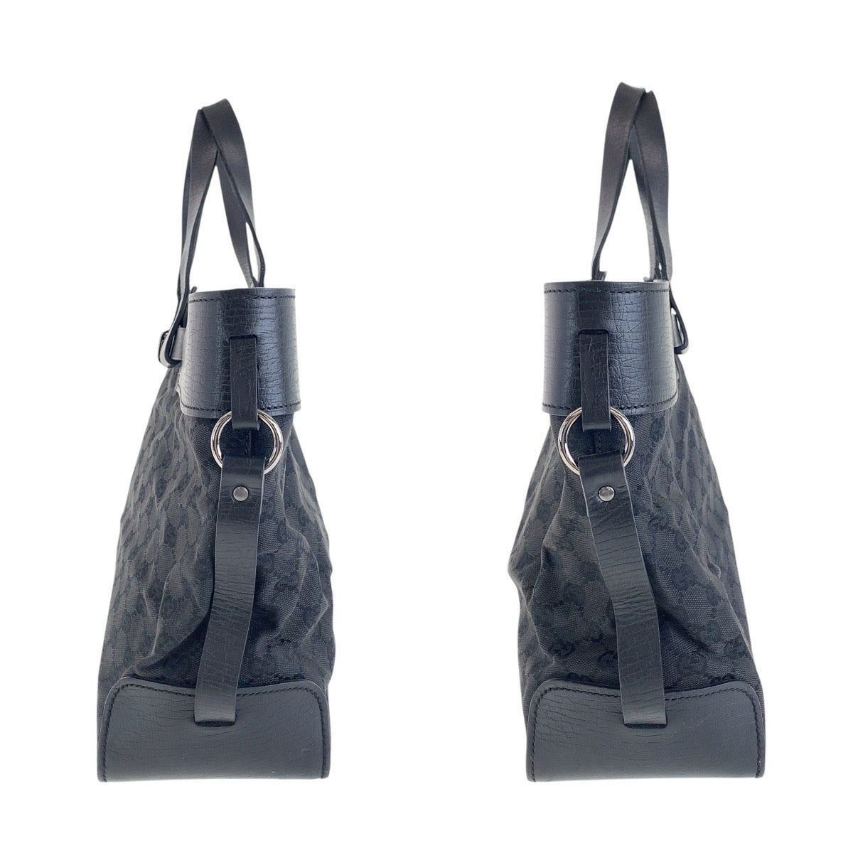 GUCCI Tote Bag 106251 GG canvas, leather Black SilverMetal Tote Bag handbag mens Used Authentic