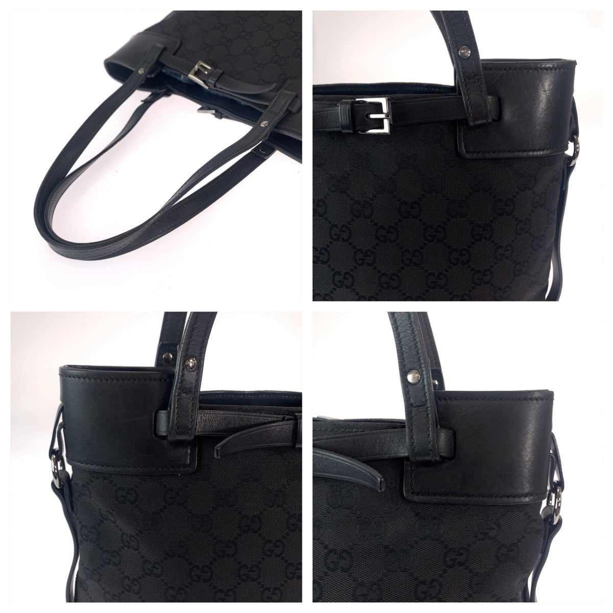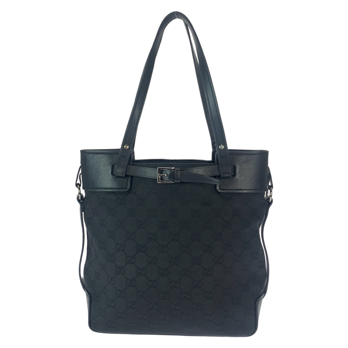 GUCCI Tote Bag 107757 GG canvas Black SilverMetal Tote Bag Shoulder Bag Women Used Authentic