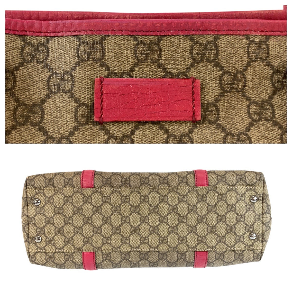 GUCCI Tote Bag 114595 GG Supreme canvas, leather Pink Brown SilverMetal Tote Bag Shoulder Bag Women Used Authentic
