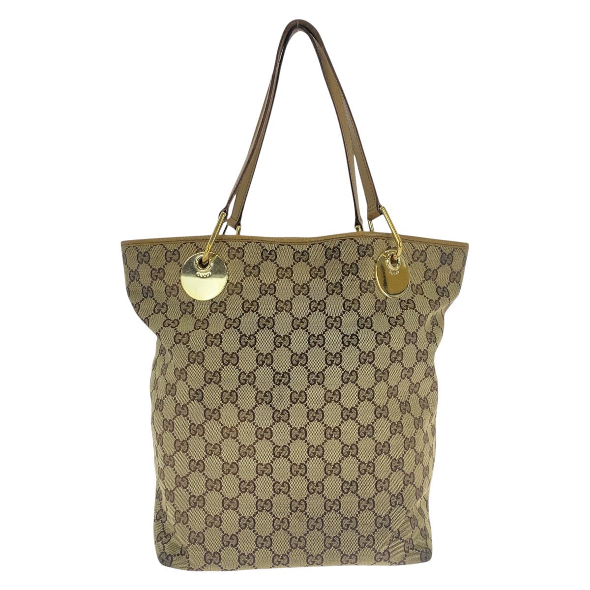 GUCCI Tote Bag 120836 GG canvas, leather Beige Brown Gold Metal Tote Bag Shoulder Bag Women Used Authentic