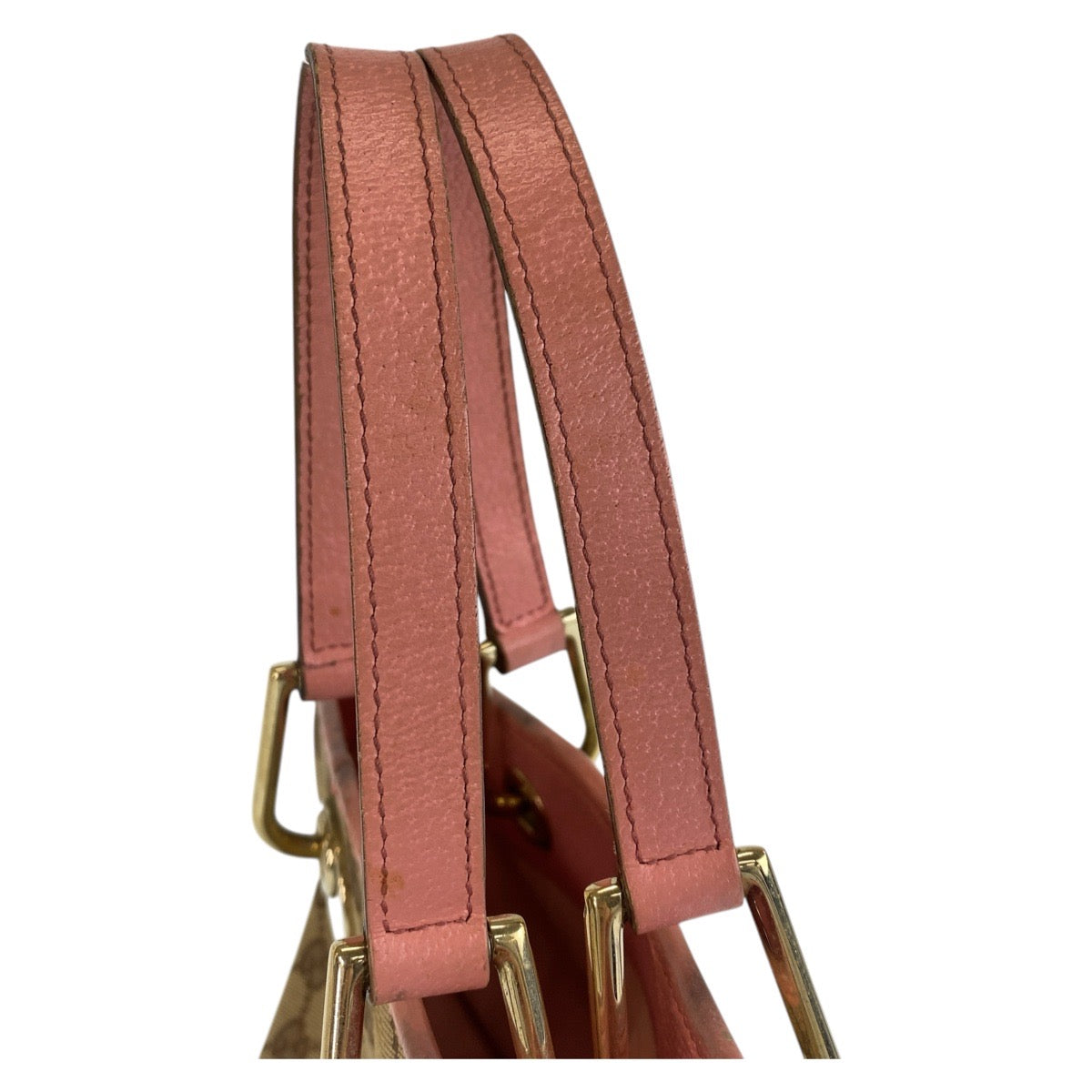 GUCCI Tote Bag 120844 GG canvas, leather Beige Pink Gold Metal Tote Bag handbag Women Used Authentic