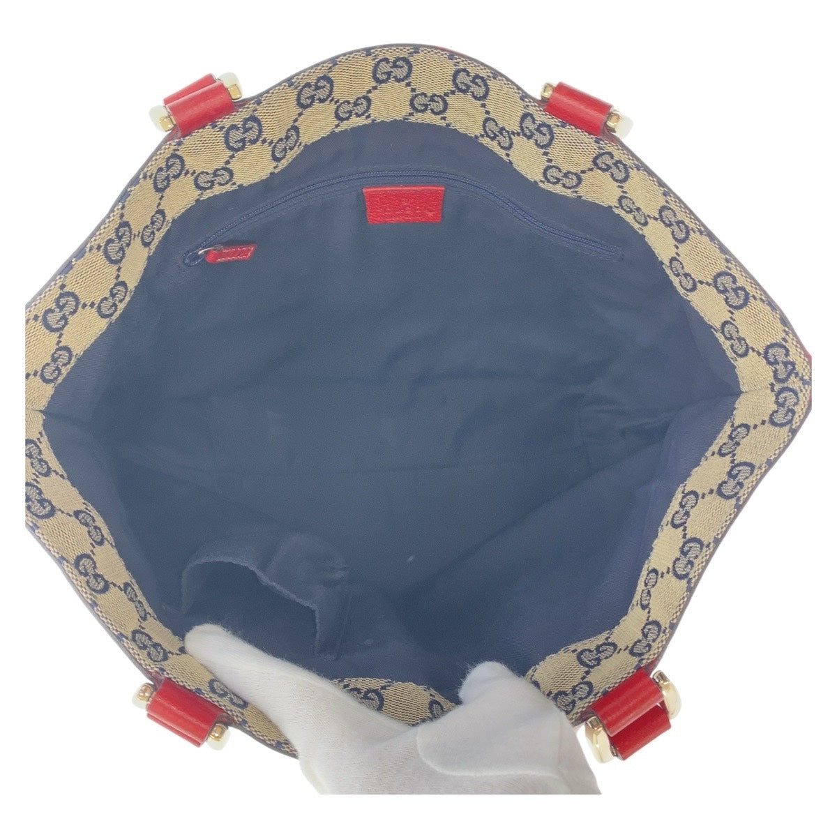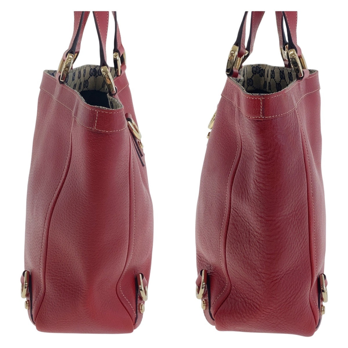 GUCCI Tote Bag 130739 Leather, GG canvas Red Gold Metal Tote Bag handbag Abbey Women Used Authentic