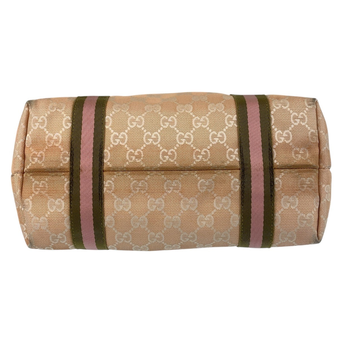 GUCCI Tote Bag 137396 GG canvas, leather Pink Ivory Gold Metal Tote Bag Shoulder Bag Sherry line Women Used Authentic