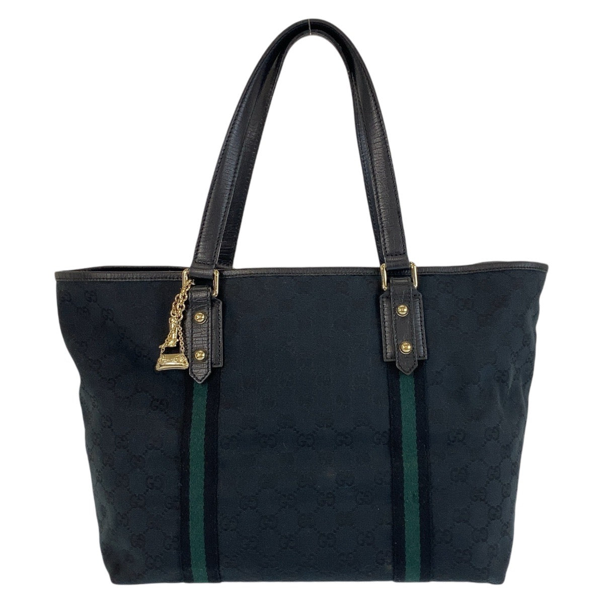 GUCCI Tote Bag 139260 GG canvas, leather black Tote Bag Shoulder Bag Sherry line Women Used Authentic