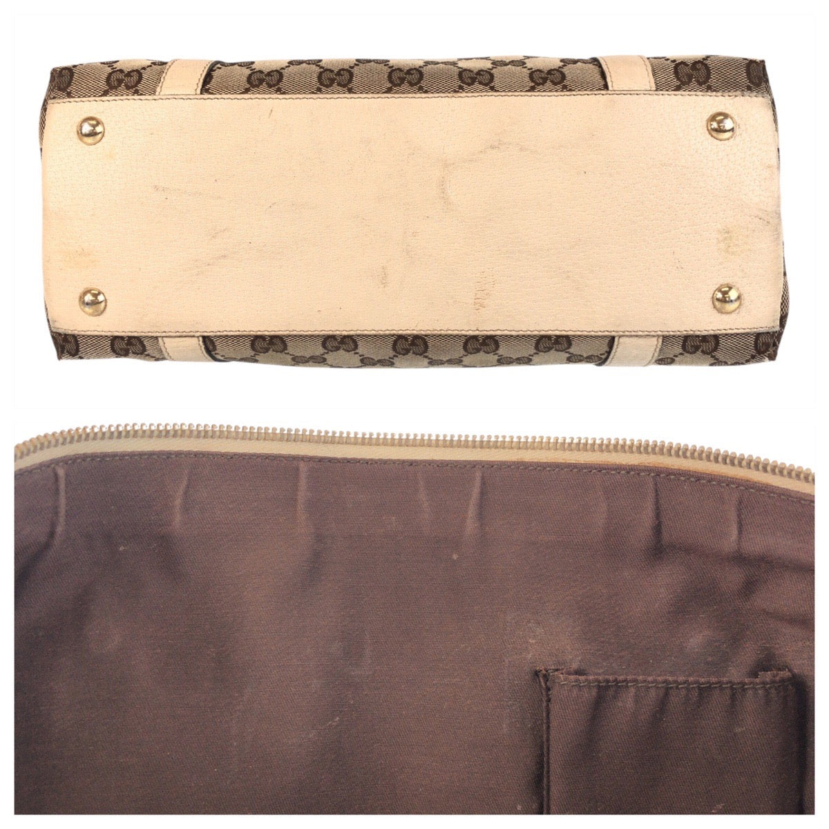 GUCCI Tote Bag 141470 GG canvas Beige White Gold Metal Abbey
