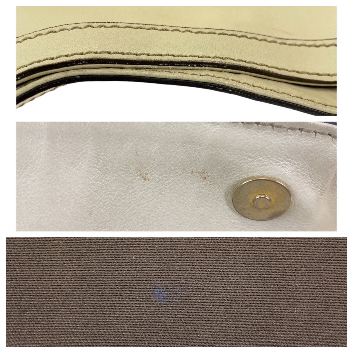 GUCCI Tote Bag 162336 leather White Beige Gold Metal Tote Bag Shoulder Bag Interlocking Newbrit Women Used Authentic