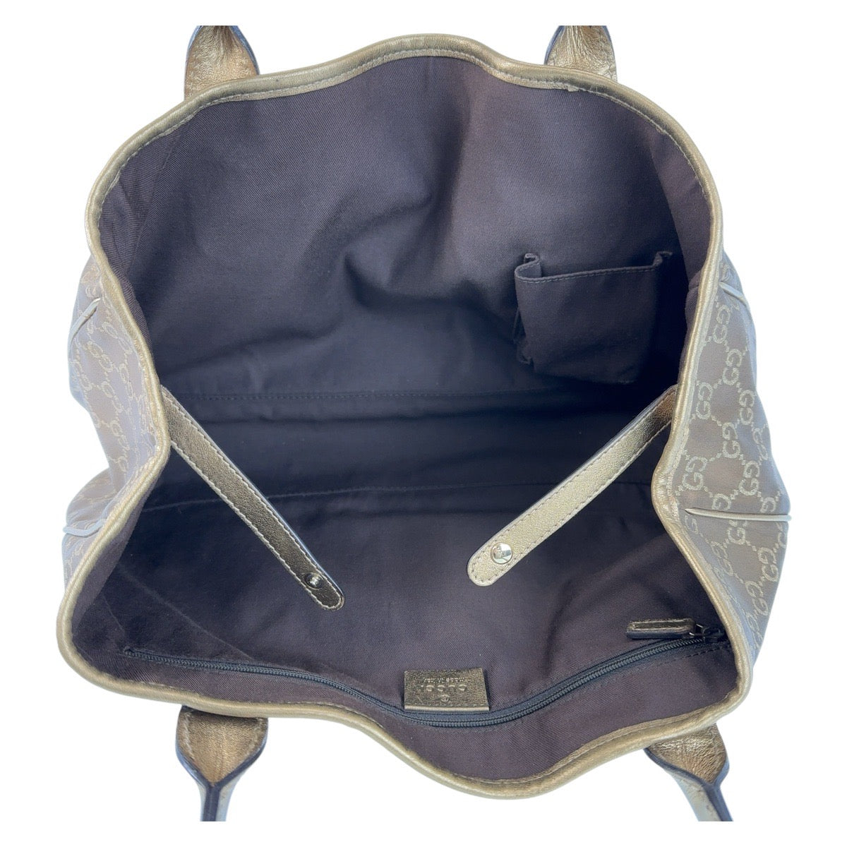 GUCCI Tote Bag 163805 Satin, Leather Brown Gold Metal Tote Bag Shoulder Bag Pretty GG pattern Women Used Authentic