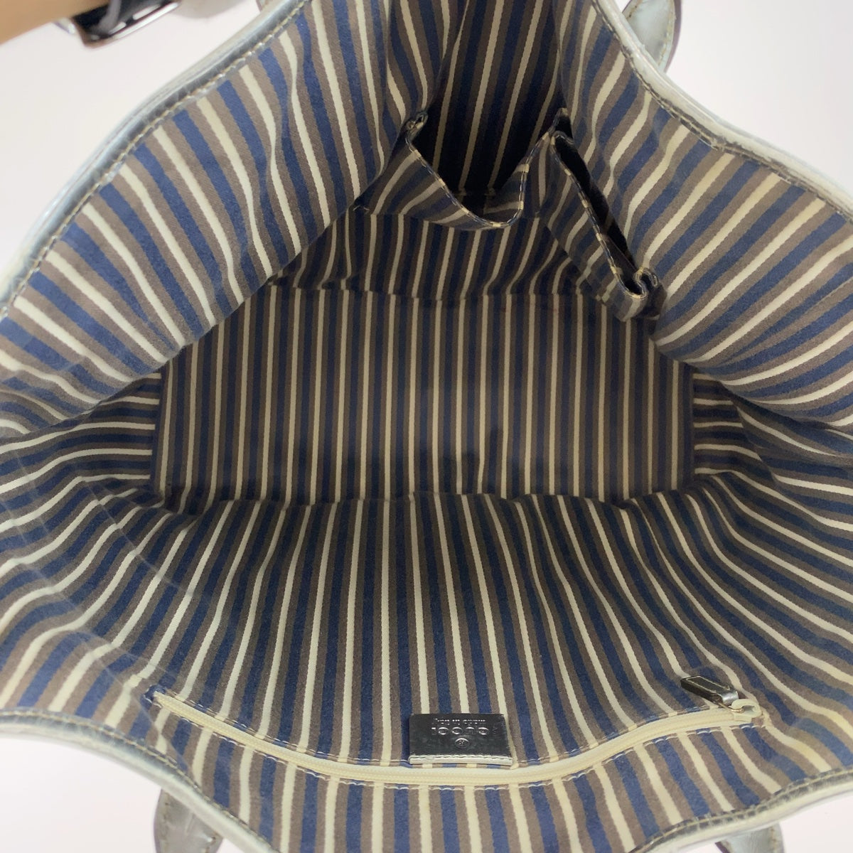 GUCCI Tote Bag 169945 GG canvas, leather Silver Metal Tote Bag Shoulder Bag Interlocking Newbrit Women Used Authentic