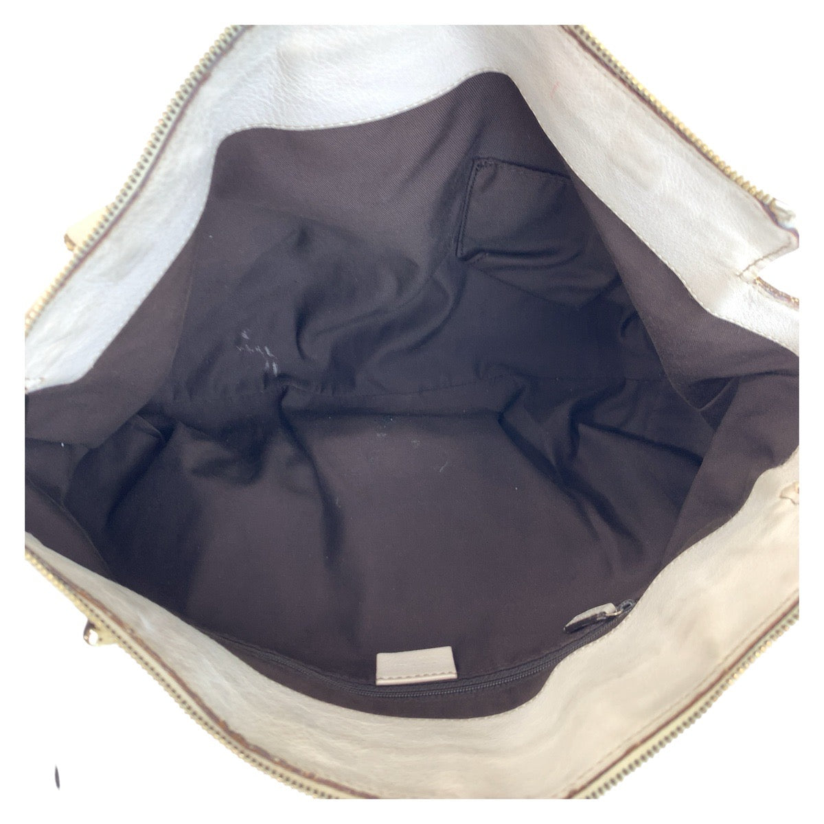 GUCCI Tote Bag 189831 GG canvas, leather Beige White Gold Metal Tote Bag Shoulder Bag Women Used Authentic